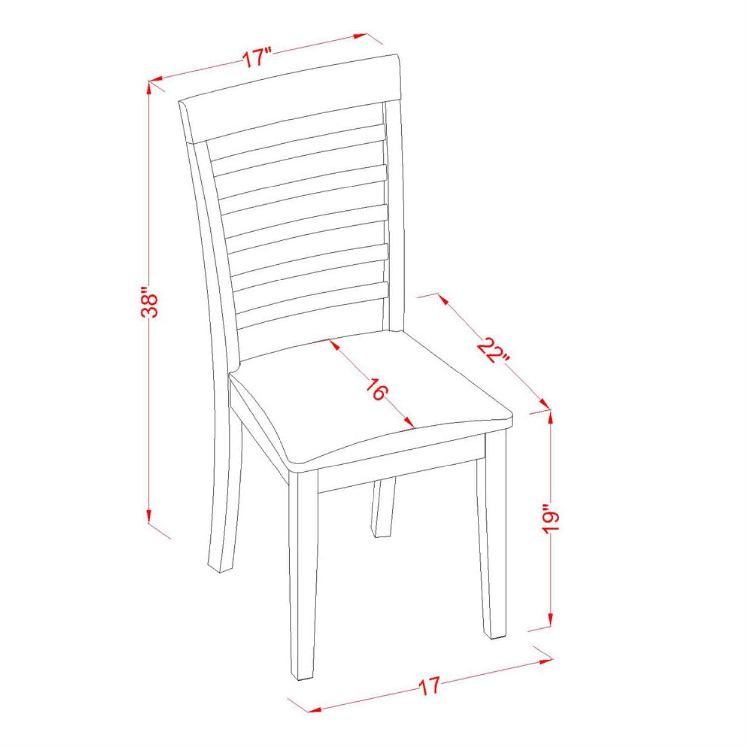 - PRODUCT DIMENSIONS: Dimensions of Kitchen Chairs are: Length: 22; Width: 17; Height: 38. Dimensions of the Rectangular Dining Table are: Length: 36; Width: 36; Height: 30.