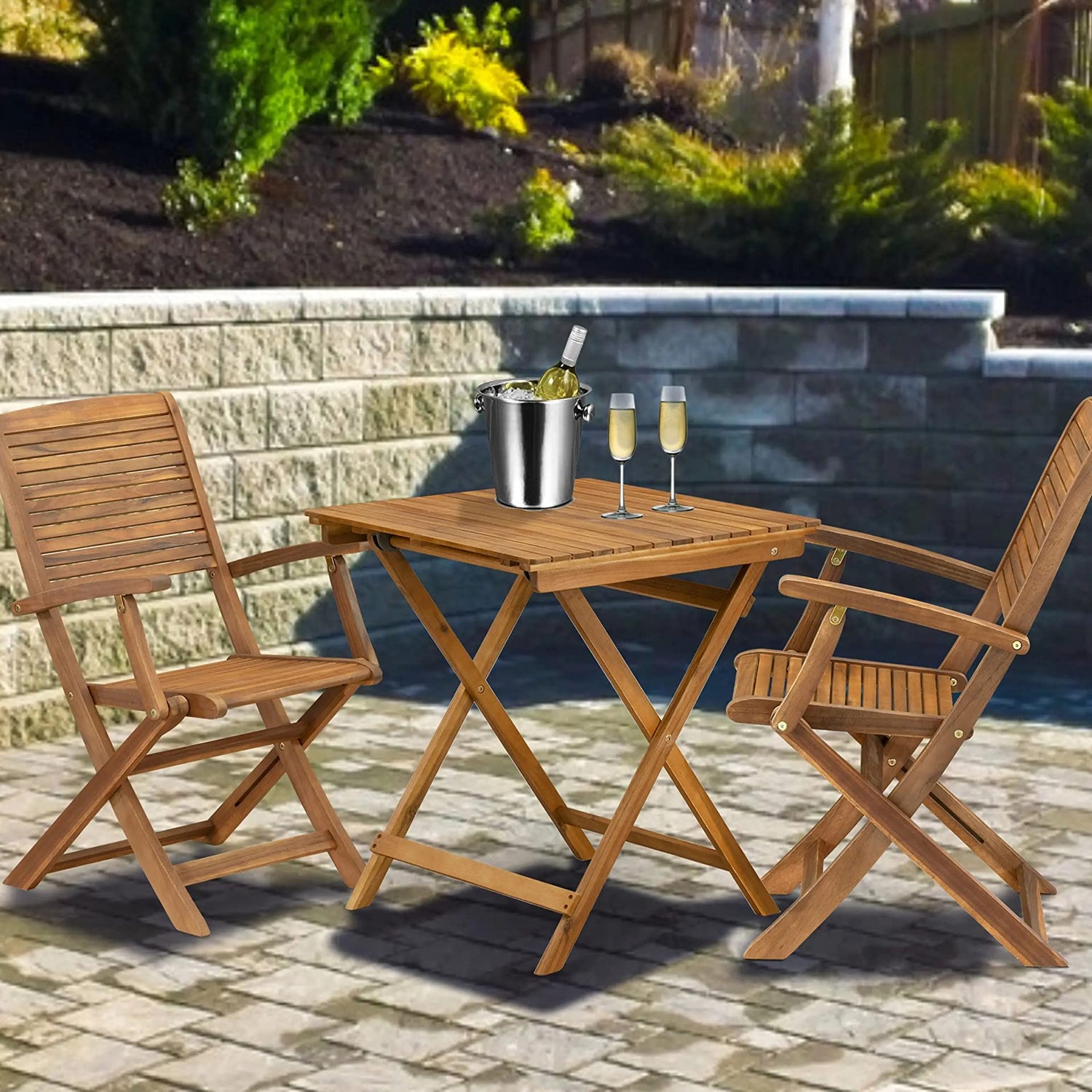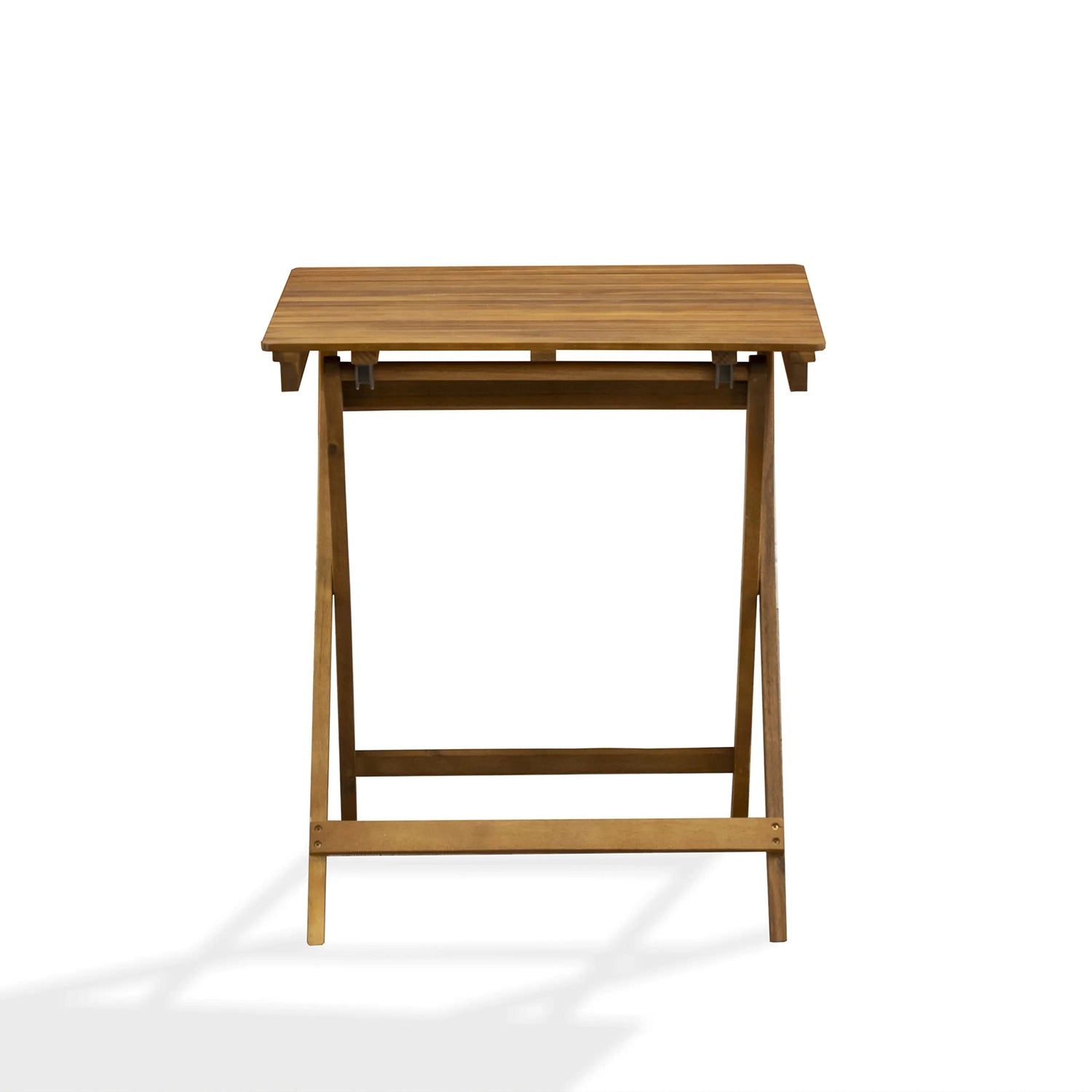 East West Furniture SEHD3CANA Selma 3 Piece Patio Bistro Set Contains a Square Outdoor Acacia Wood Coffee Table and 2 Folding Arm Chairs, 26x26 Inch, Natural Oil