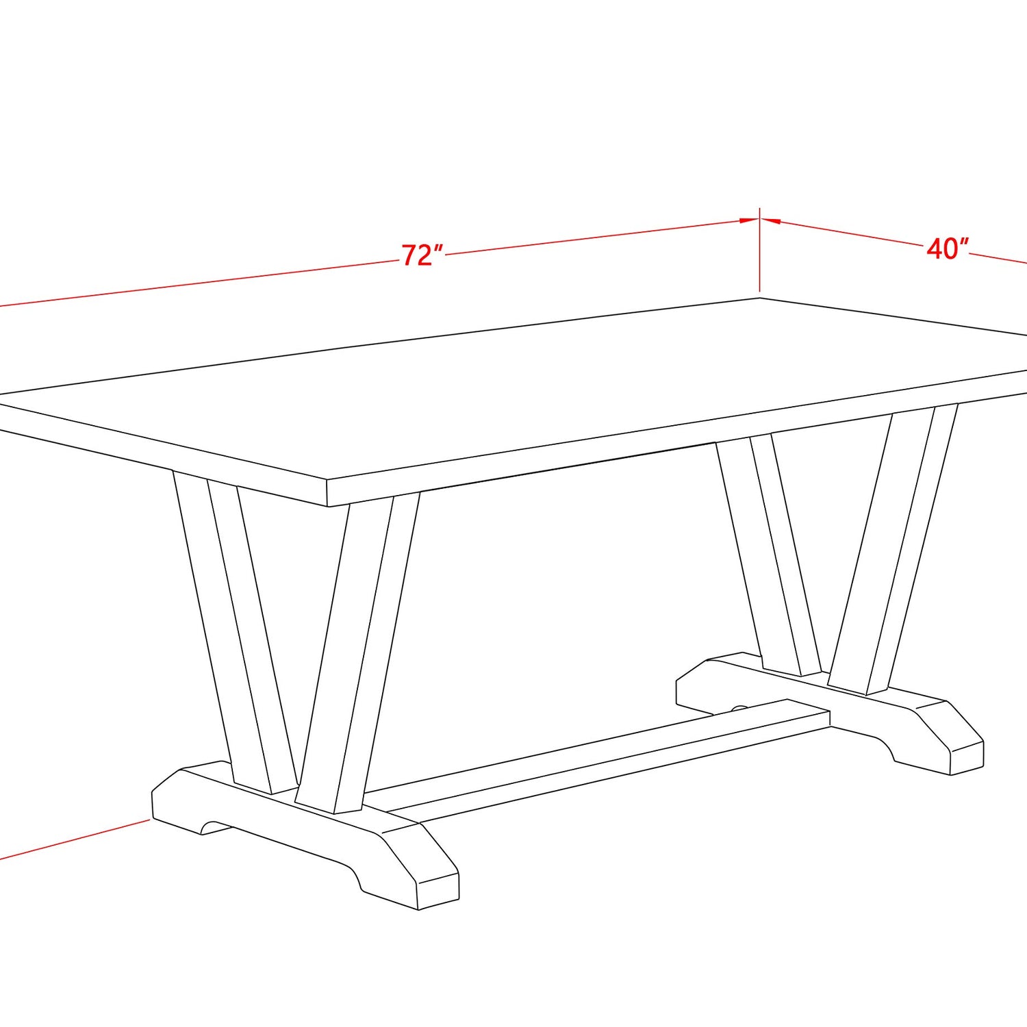 East West Furniture V-Style Mid-Century Modern Dining Rectangle Solid Wood Table Top with Stylish Legs, 40x72 Inch, VT677
