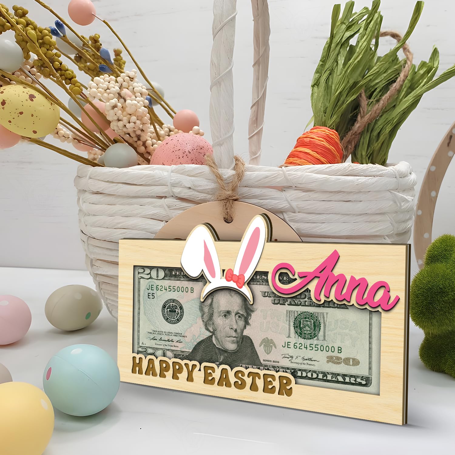Easter Personalized Money Gift Holder - Custom Name Wooden Easter Gift Card Money Holder for Boys Girls, Hanging Easter Gift Card Holder Gifts