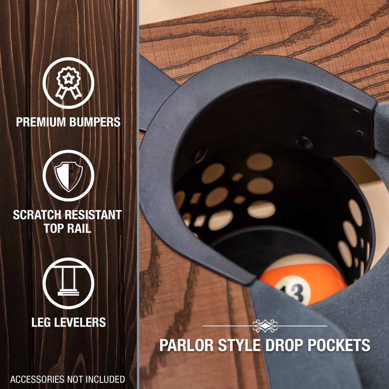 Details: EastPoint Sports Dunhill 87-Inch Rustic Pool Table - 8 Ball Pool Game Table with Pool Table Accessories for Billiards & Indoor Games in Rec Room, Basement or Family Game Room