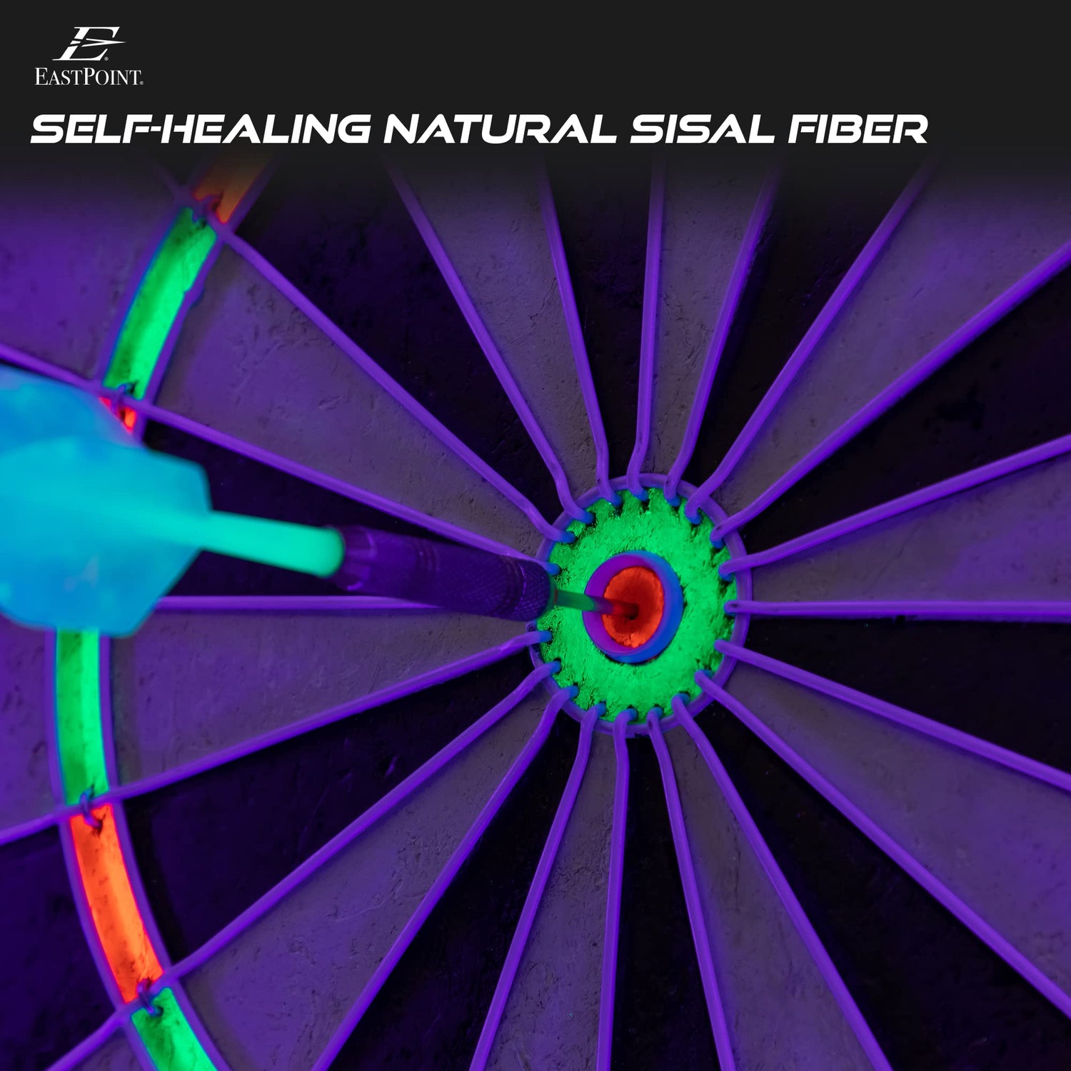 EastPoint Sports EastPoint Blacklight Dartboard - Official Size Bristle Dartboard with Glowing Segments and Dart Flights
