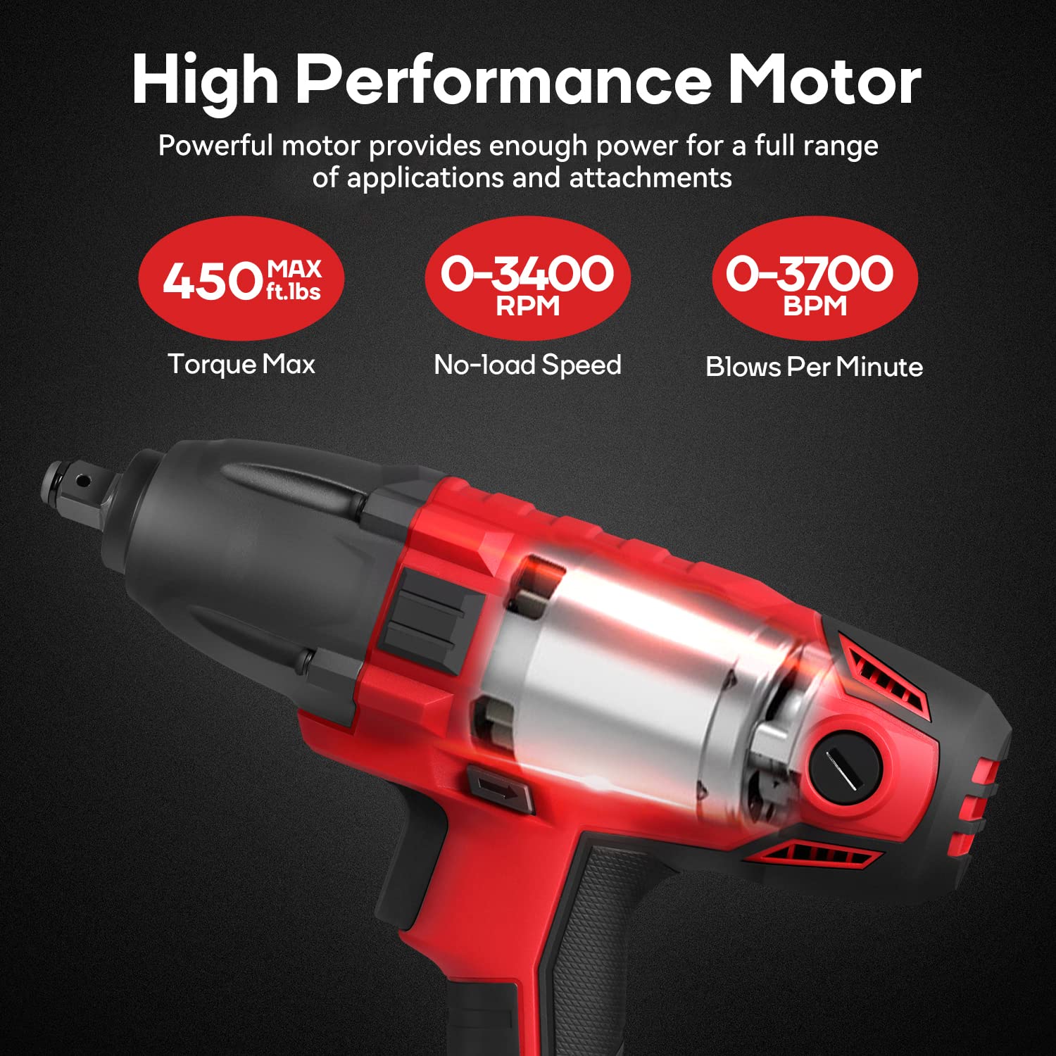 - HIGH TORQUE: The electric impact wrench is equipped with strong power motor, which can put out MAX.450 ft.lbs of torque for removing lug nuts and bolts.