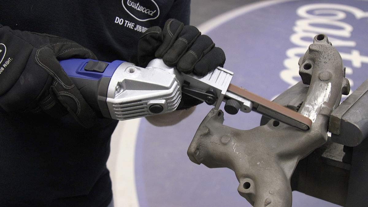 Eastwood Electric Mini Belt Sander | Robust 5.3 Amp Motor | Sanding and Grinding Tool | Lightweight Aluminum Body with Swivel Head | Grinder File