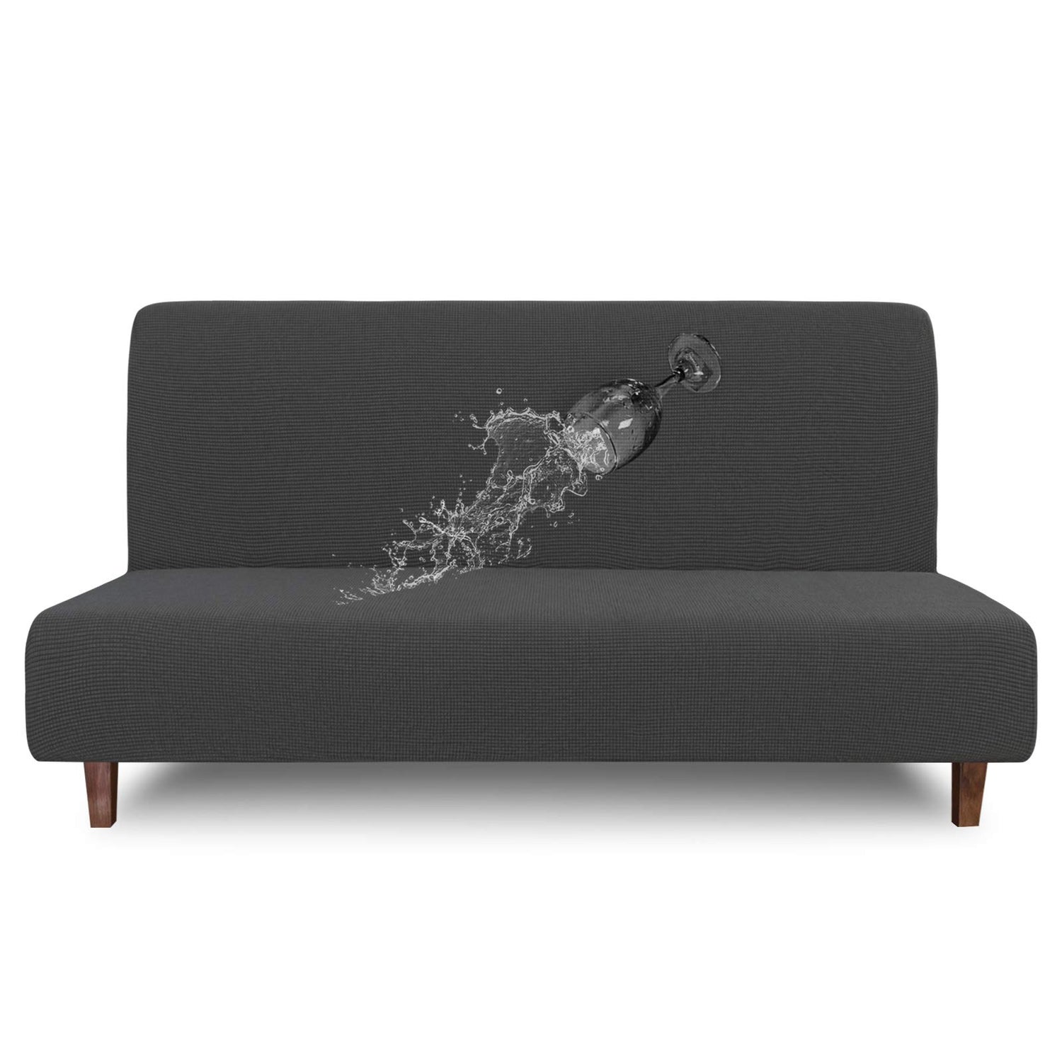 Easy-Going 100% Waterproof Armless Sofa Cover for Futon Couch, Stretch Jacquard Leakproof Furniture Protector for Kids, Pets, Dog and Cat (Dark Gray)