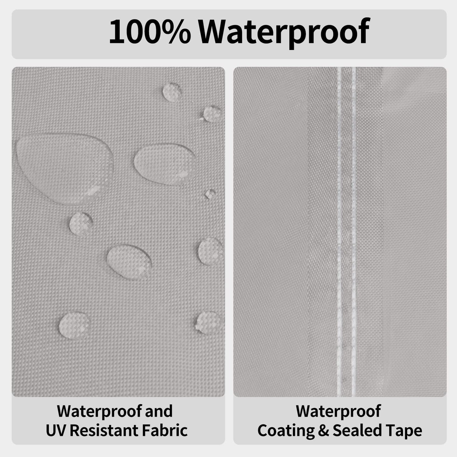 2.The fabric of patio sofa cover is 100% waterproof with tape sealed seam, which can keep your furniture clean, dry and safe.