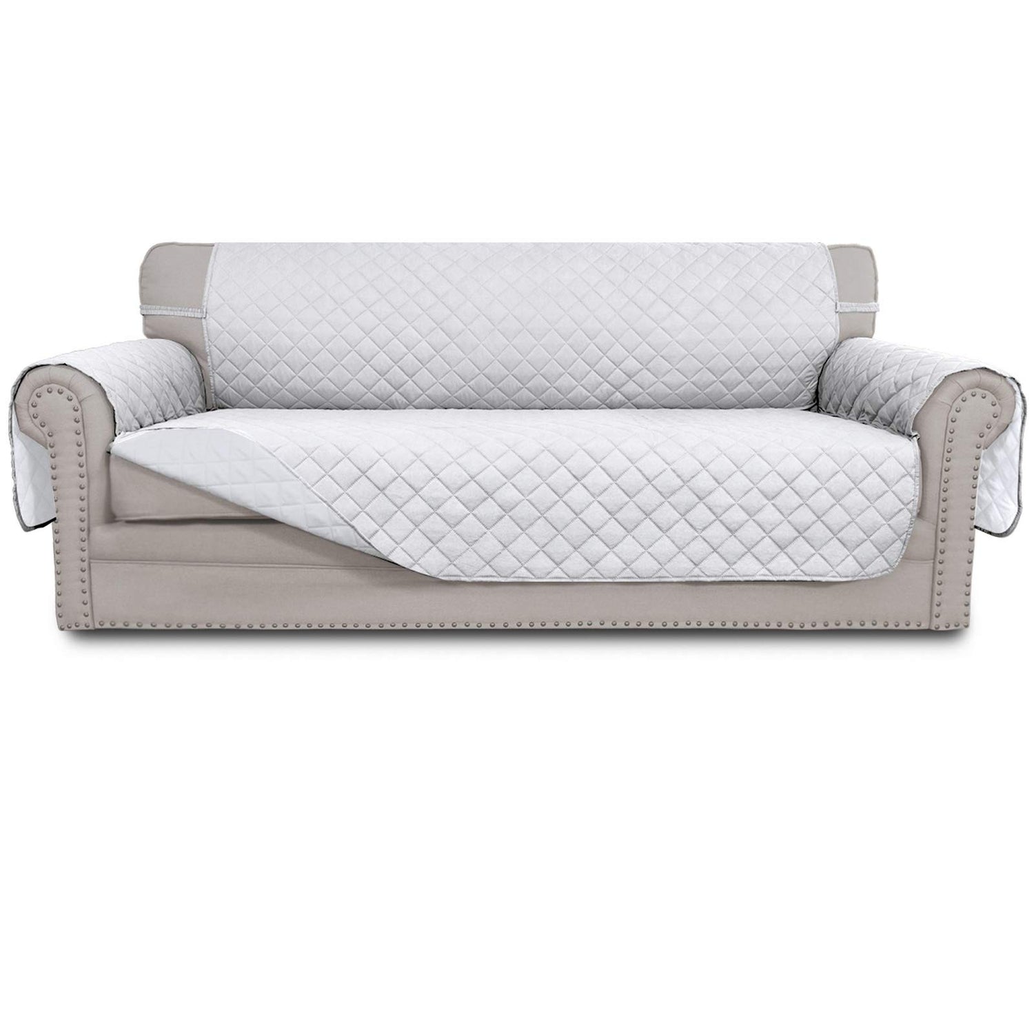Easy-Going Reversible Couch Cover for 3 Cushion Couch Sofa Cover for Dogs Water Resistant Furniture Protector Cover with Foam Sticks Elastic Straps for Pet Cat (Sofa, White/White)
