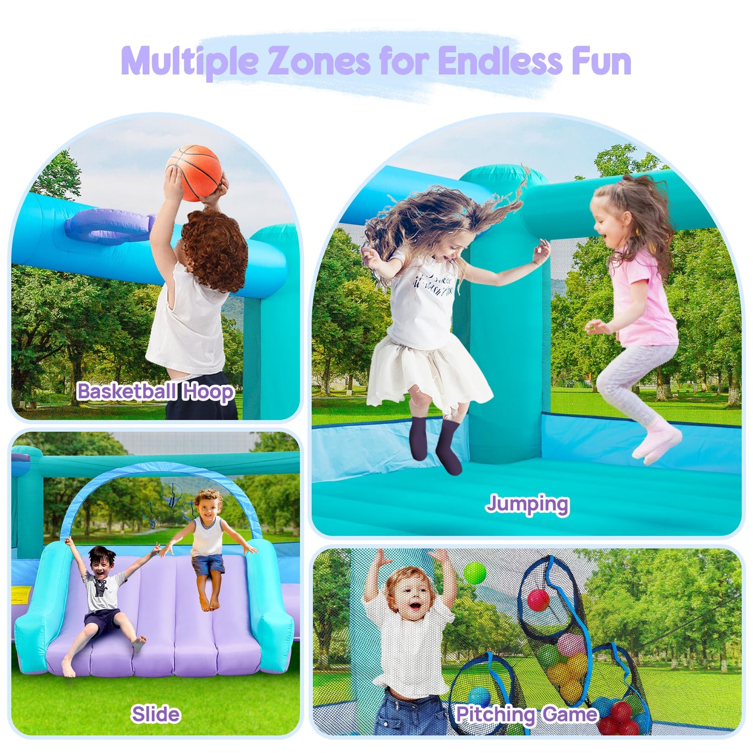 Easyair Large Bounce House for Big Kids, 14.8 x 14.5 FT Inflatable Bouncer Jumper Slide with 650W Blower, Basketball Hoop, Throw Ball Game, Ball Pits (Green, 177" L x 174" W x 94" H)