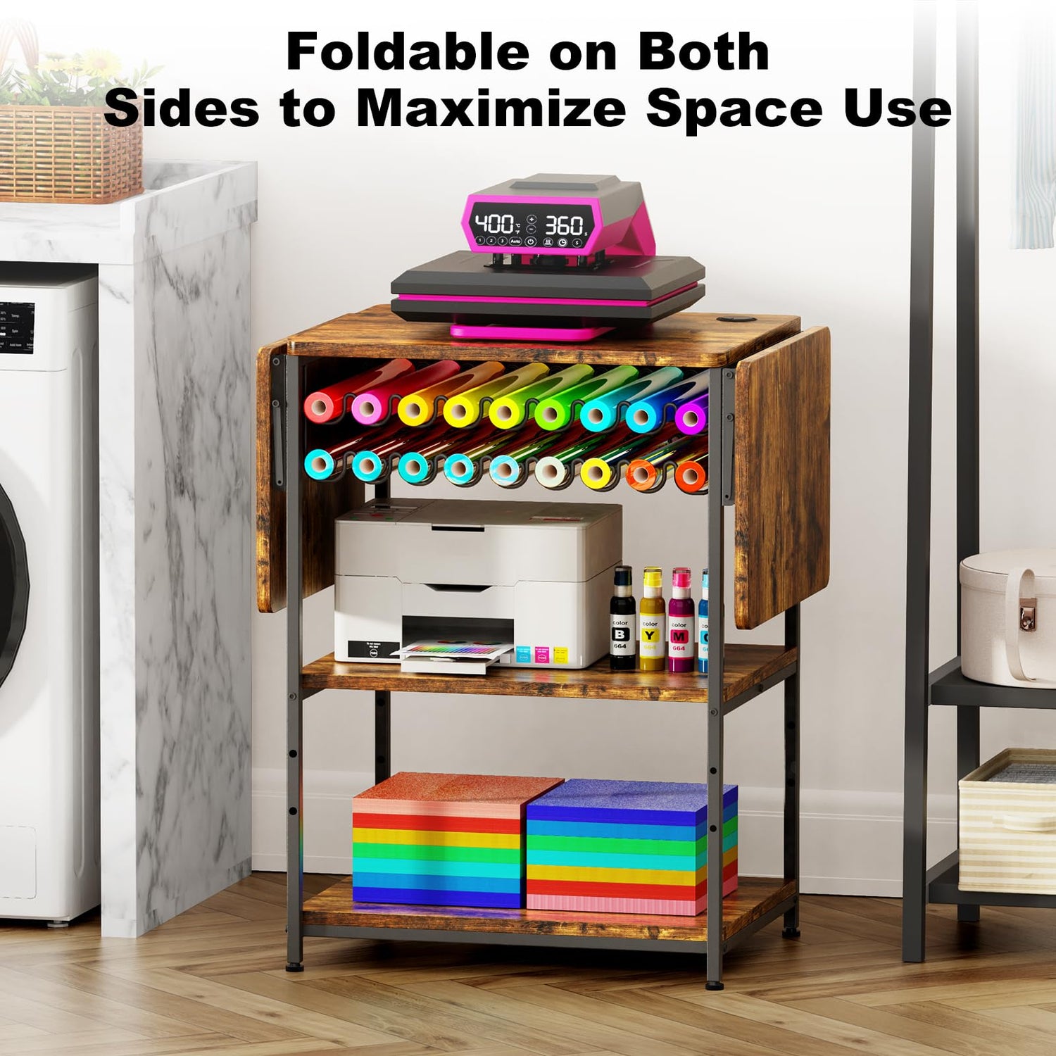 EasyCom 19.7"x46.5" Heat Press Table with 18 Vinyl Roll Holders, Adjustable Height 3 Tier Heat Transfer Machine Stand with Wheels, Foldable Crafting Table for DIY Sublimation Transfer Machine