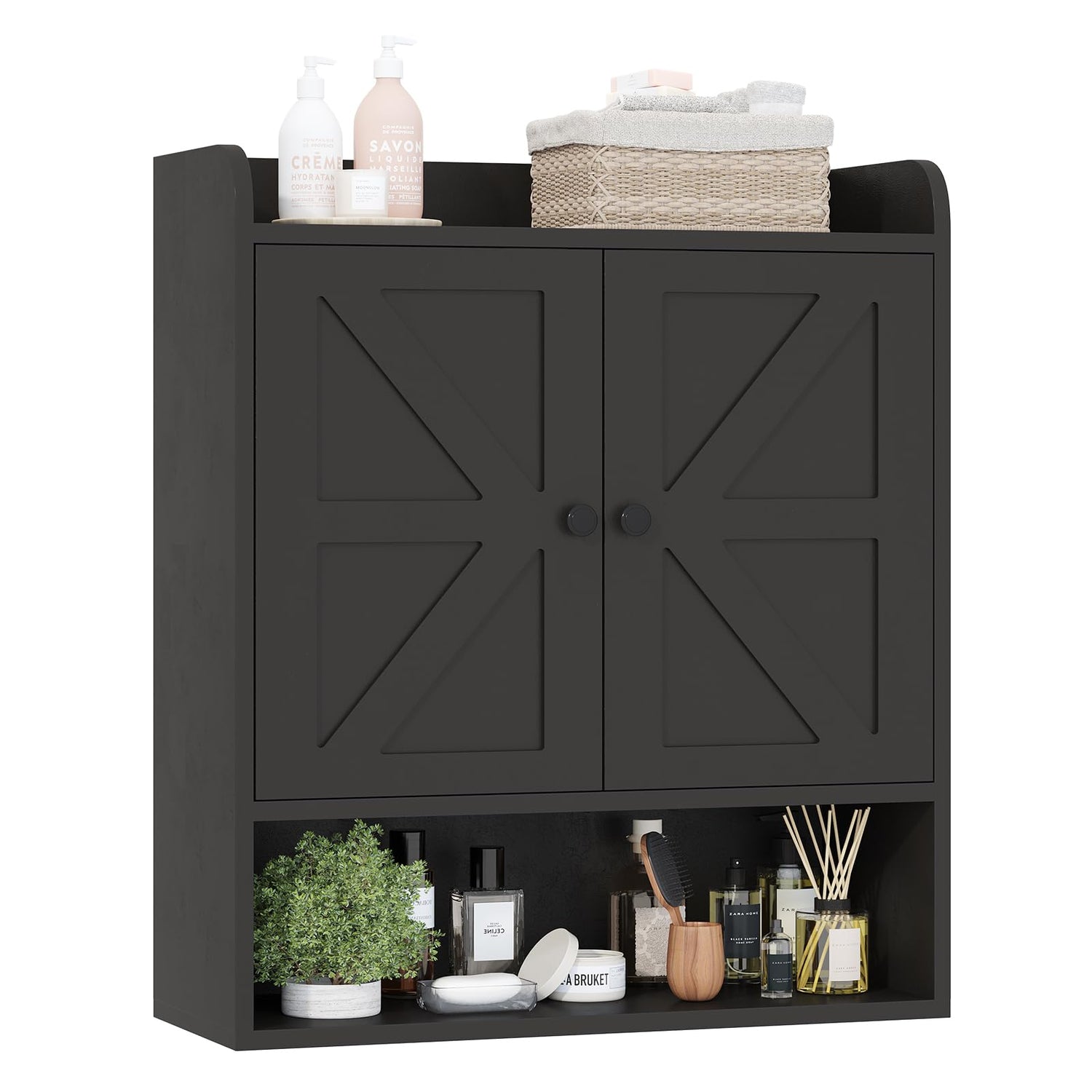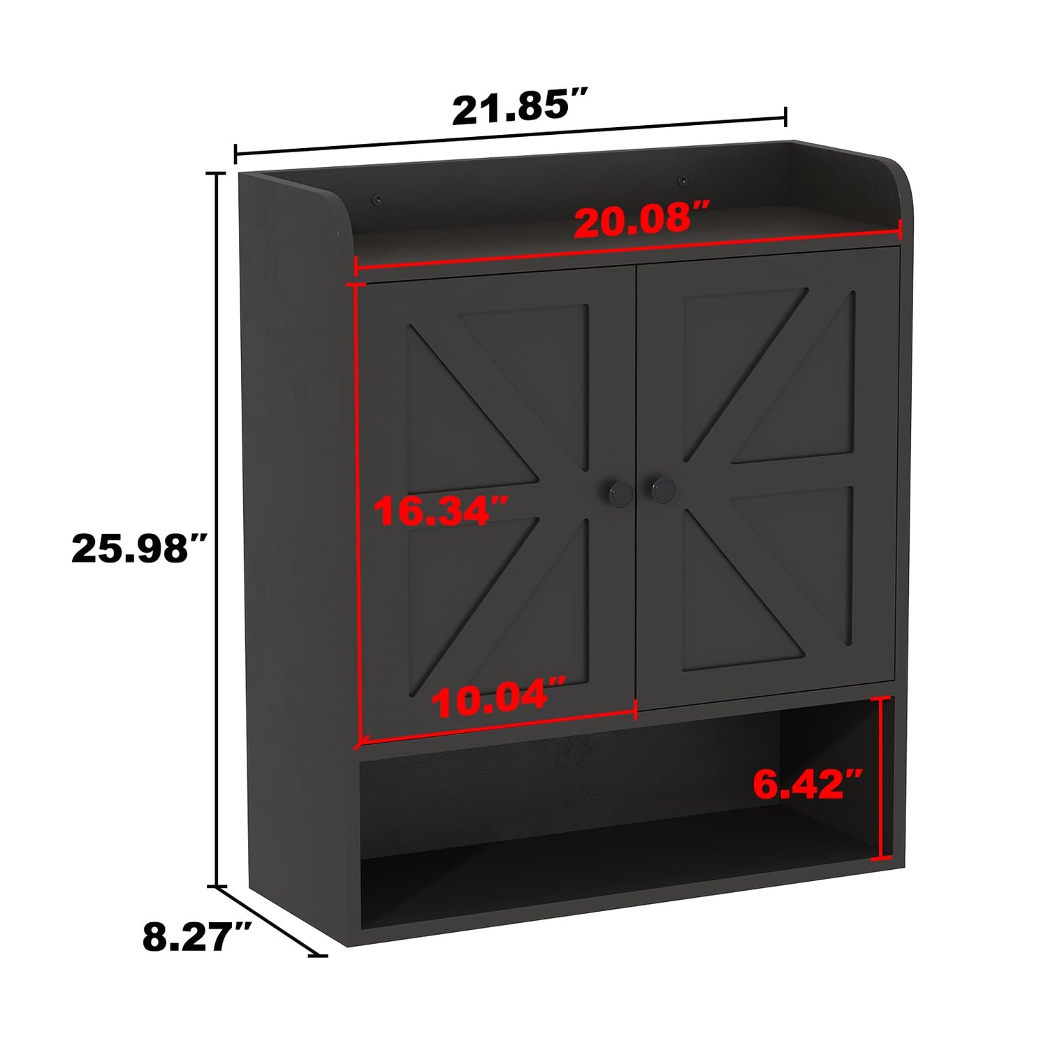 EasyCom 22" W x 26" H Bathroom Wall Cabinet, Farmhouse Medicine Cabinet with Adjustable Shelves and Double Barn Doors, Over The Toilet Storage Cabinet for Bathroom, Kitchen, Living Room, Black