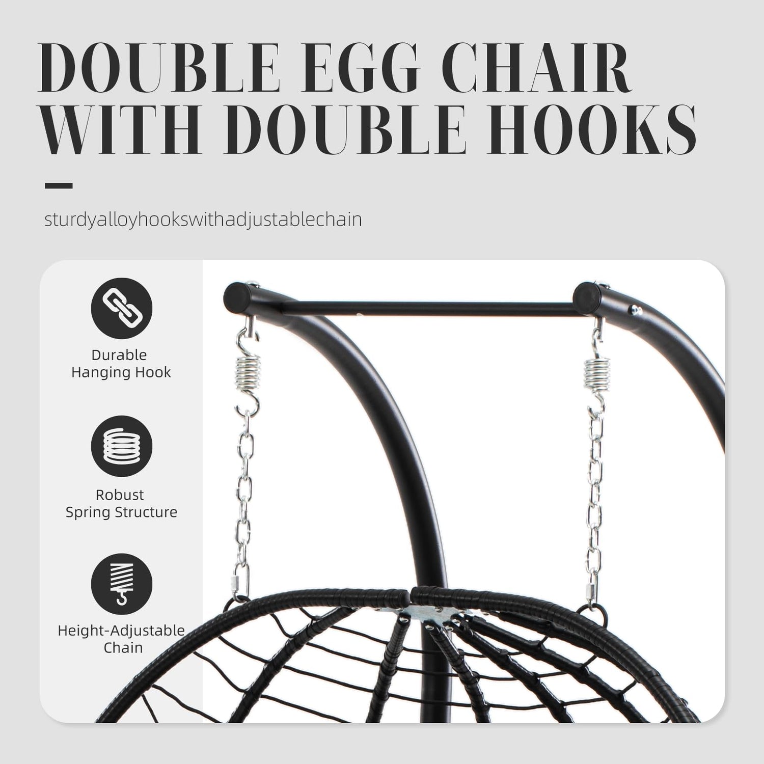 - 【Versatile Use】Double egg chair adds style and comfort to indoor/outdoor spaces. Complements patio furniture—great for tea, sunbathing, or reading. Cozy spot for both kids and adults to relax and unwind