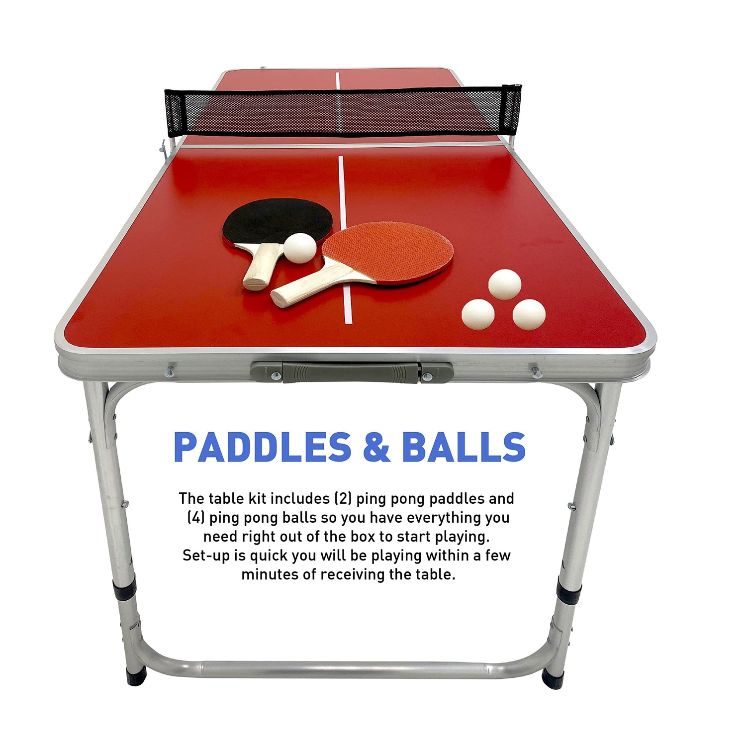 - π PADDLES & BALLS β The table kit includes (2) ping pong paddles and (4) ping pong balls so you have everything you need right out of the box to start playing. Set-up is quick you will be playing within a few minutes of receiving the table.