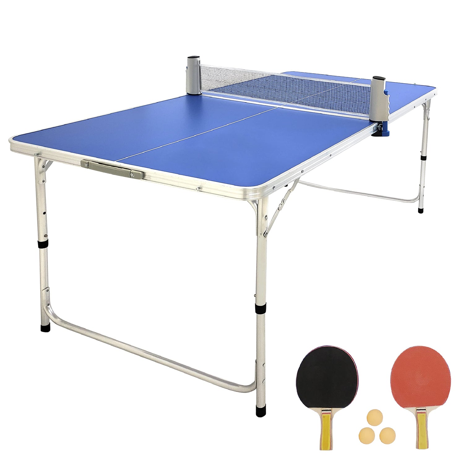 Details: We all love ping pong when playing but the issue is where to put the table when finished. A big table cannot fit in the closet, canβt go outdoors so just another huge item to store in the garage. Our space saving design is all about practicality and fun. This small table is great fun for the whole family. Legs adjust from 28 Inches tall for normal play down to 24 inches tall for the little kids. The paddles and balls fit inside the table and it folds right up into a case. Easily store in extra bedroom, utility room or large closet. If you want to store in the garage it fits easily against the wall or even in the rafters. Easily set up for parties and events or just some fun with your kids. 5 Foot X 2.5 Foot. Designed for kids but great for adults that like to entertain and interact with their children. You can really get some fun games but it does take practice to improve your skills. This table is designed to be used indoors. If using outdoors use only in good weather and just make sure to pack it up and store each night inside house or garage. No loose parts on our net system. Just clamp to the sides and stretch over the table. Never any tools required. Could not be easier and no loose parts or pieces to keep track of or lose. Net folds down and fits inside of the table for storage. The table kit includes (2) ping pong paddles and (3) ping pong balls so you have everything you need right out of the box to start playing. Set-up is quick you will be playing within a few minutes of receiving the table. EasyGo Products designs and sells items that are easy to use, easy to store and big on fun. With Amazon you can be confident if your not satisfied they will make it right or return the item within 30 days. Try this table we know you will be pleasantly surprised.