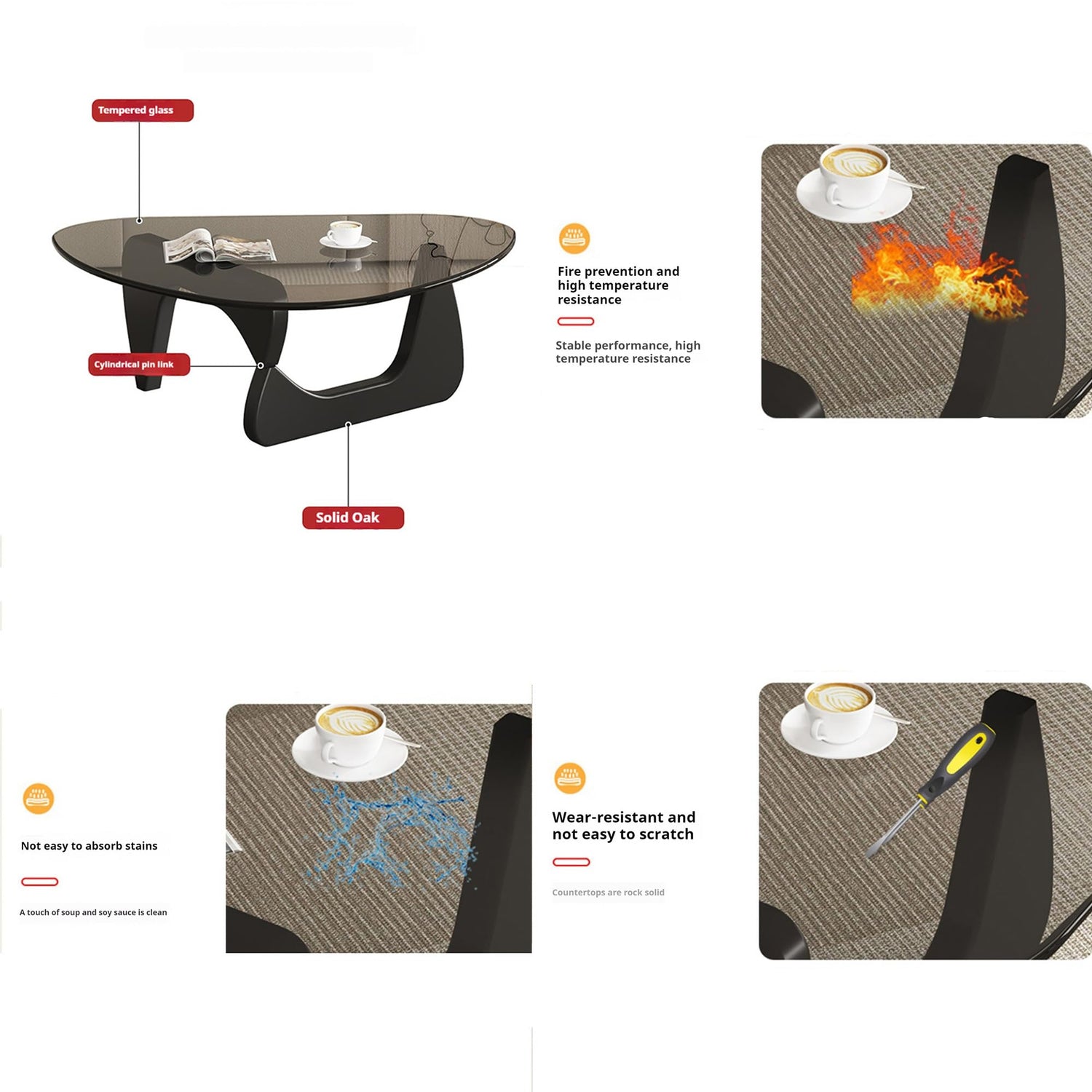 - Sturdy Construction: Crafted with a durable tempered glass top and solid wood base for long-lasting stability.The legs of this coffee table are very stable. If not deliberately moved, it will not tip over. At the same time, the overall solid wood support structure will not scratch your floor.