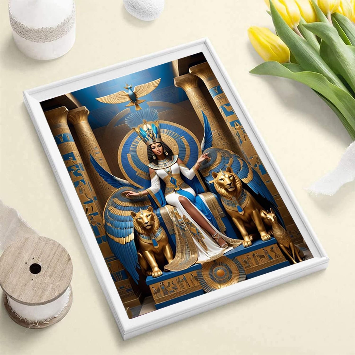 EATUKYIC Egyptian Goddess and Lion Diamond Painting, Egyptian Civilization 5D Diamond Art Painting Kits Home Wall Decor for Adults Beginners DIY Full Drill 12x16 inch