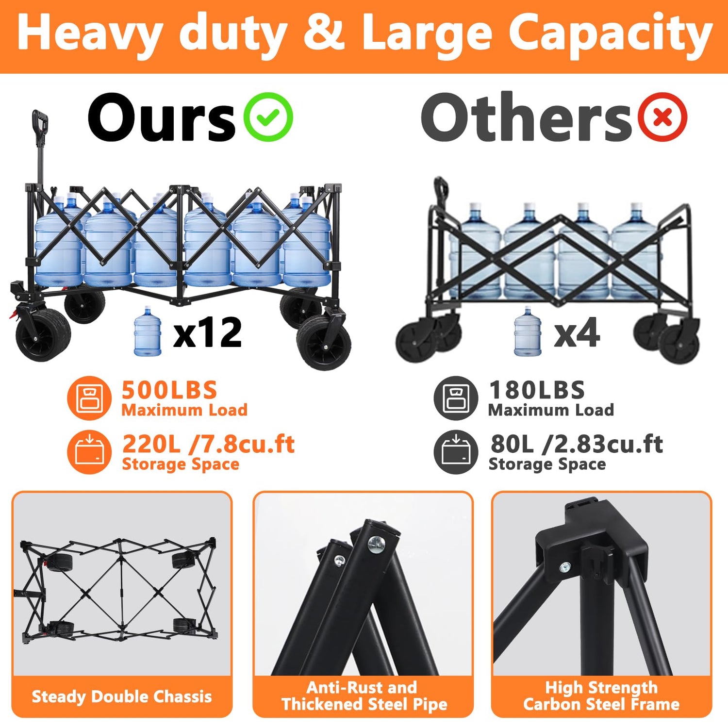 • ใ€๐—˜๐˜…๐˜๐—ฟ๐—ฎ ๐—น๐—ฎ๐—ฟ๐—ด๐—ฒ ๐—ฐ๐—ฎ๐—ฝ๐—ฎ๐—ฐ๐—ถ๐˜๐˜†ใ€‘ :๐—˜๐—”๐—ฌ๐—ก๐—ข๐—ก Foldable Wagon Cart with high quality heavy duty metal frame to load up to ๐Ÿฑ๐Ÿฌ๐Ÿฌ๐—Ÿ๐—•๐—ฆ/๐Ÿฎ๐Ÿฎ๐Ÿณ๐—ž๐—š and largest storage space can reach ๐Ÿฎ๐Ÿฎ๐Ÿฌ๐—Ÿ/๐Ÿณ.๐Ÿด๐—–๐—จ.๐—™๐—ง,wagon cart has a ๐Ÿญ๐Ÿฌ๐Ÿฌ% larger capacity than other standard sized wagons,with plenty of space to hold stuffs,You can use it with confidence.