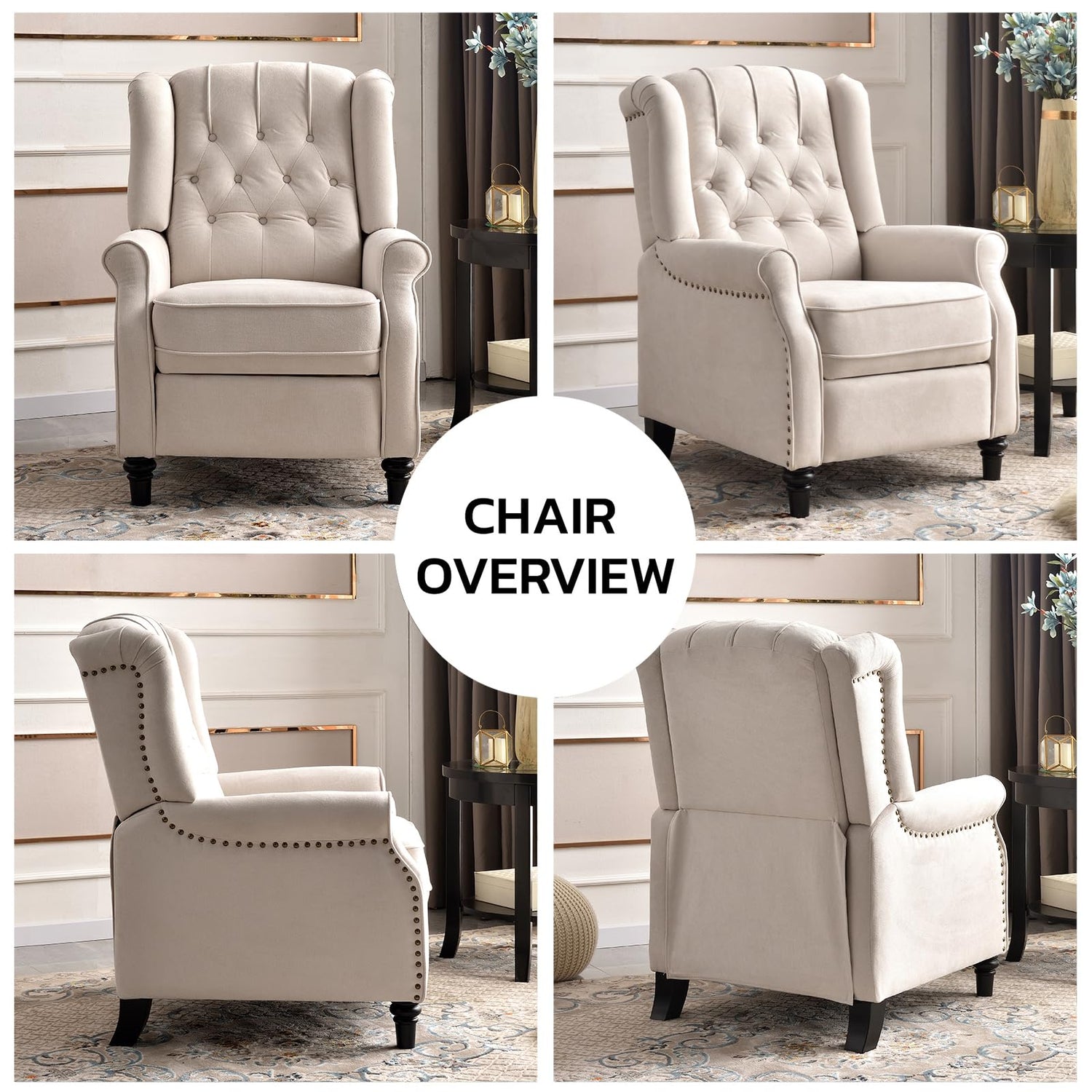 EBELLO 2 Pcs Pushback Recliner Chairs, Fabric Armchair Push Back Recliner with Rivet Decoration, Single Sofa Accent Chair for Living Room, Bedroom,Beige