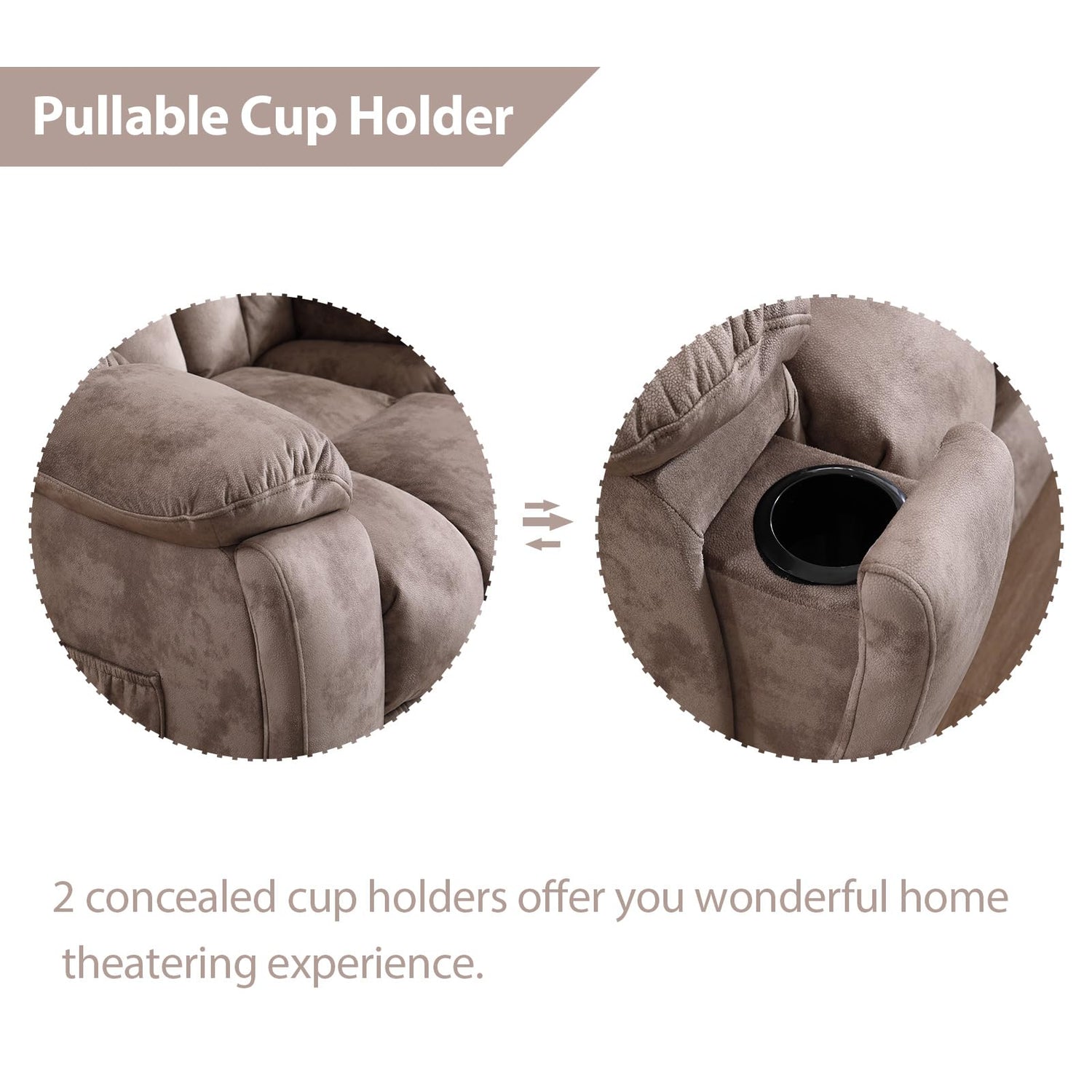 - Hidden Cup Holders in Armrests: Both the recliner and loveseat include hidden cup holders in the armrests, offering convenience and keeping your favorite beverages safe and within easy reach while you relax or enjoy entertainment.