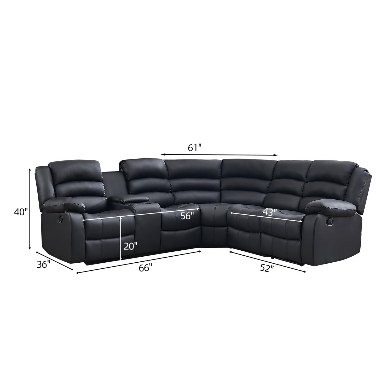 - Manual Recline Functionality: This sectional reclining sofa incorporates manual recline mechanisms. Thanks to these, the two side seats can be effortlessly adjusted to an angle that offers supreme comfort. Whether you plan to kick back and unwind or settle in for a movie, it’s easy to achieve a position that suits you perfectly
