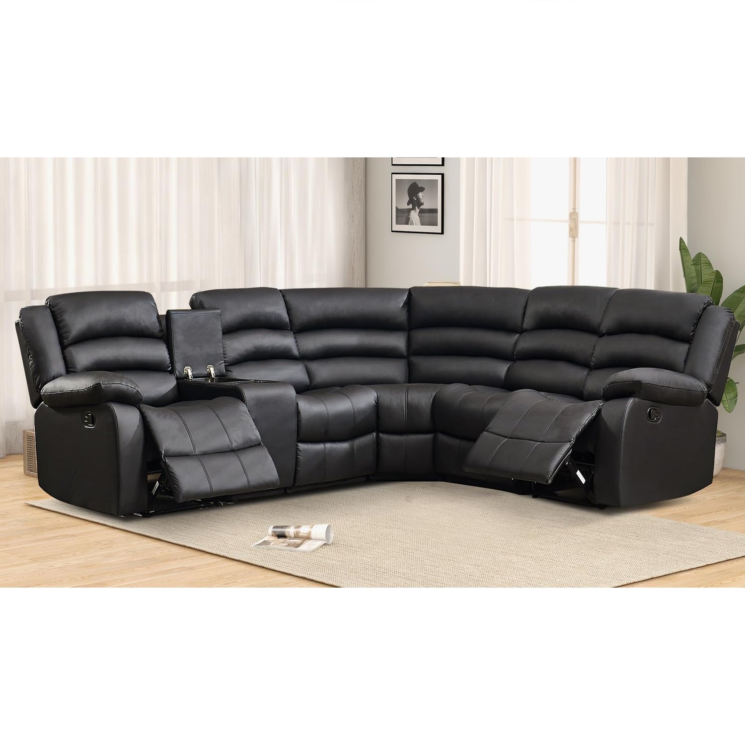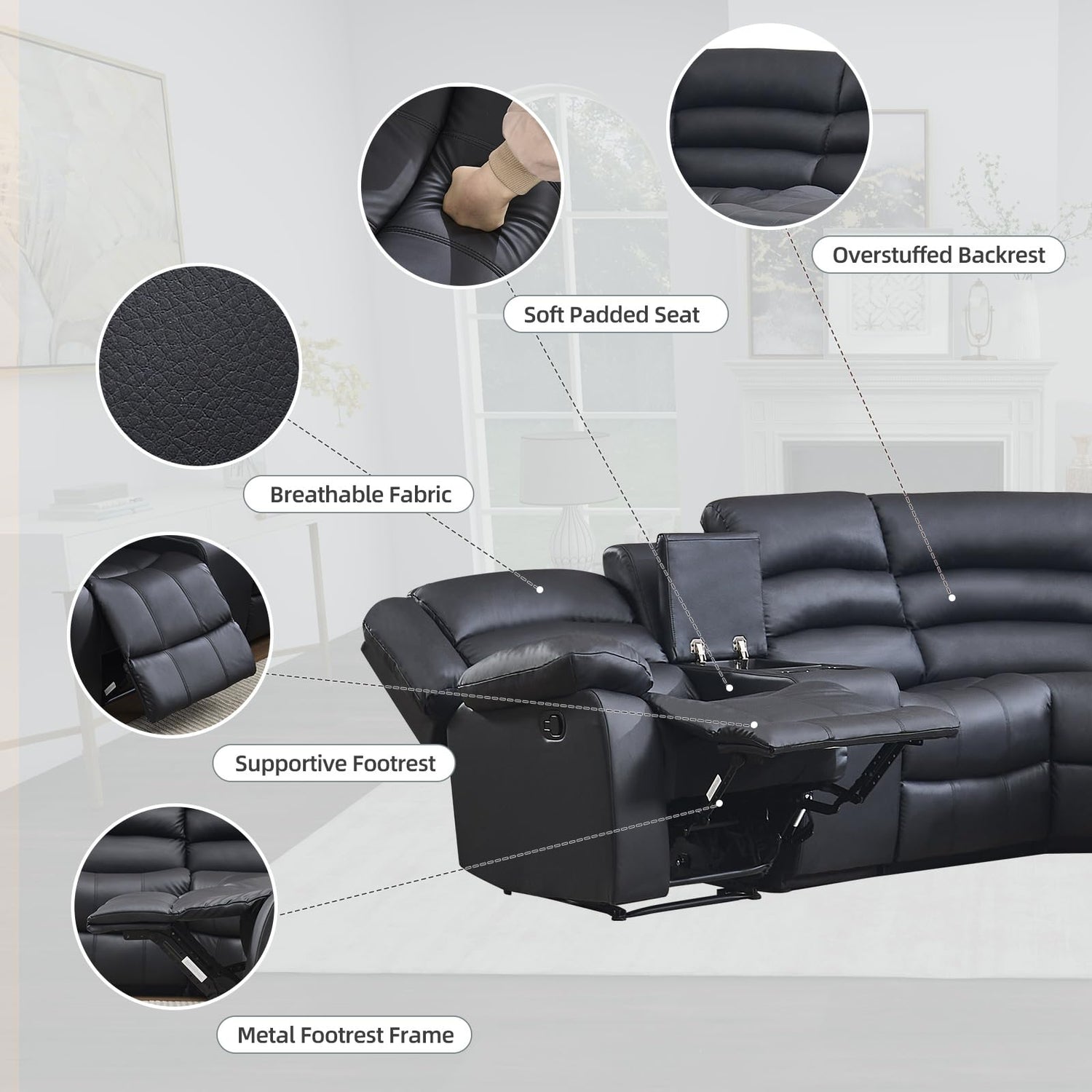 EBELLO Faux Leather L-Shaped Reclining Sectional Sofa Couch, Manual Recliner Sofa, with Cup Holders, Storage Space, a Convertible Backrest 5 Seats Home Furniture Set for Living Room, Black