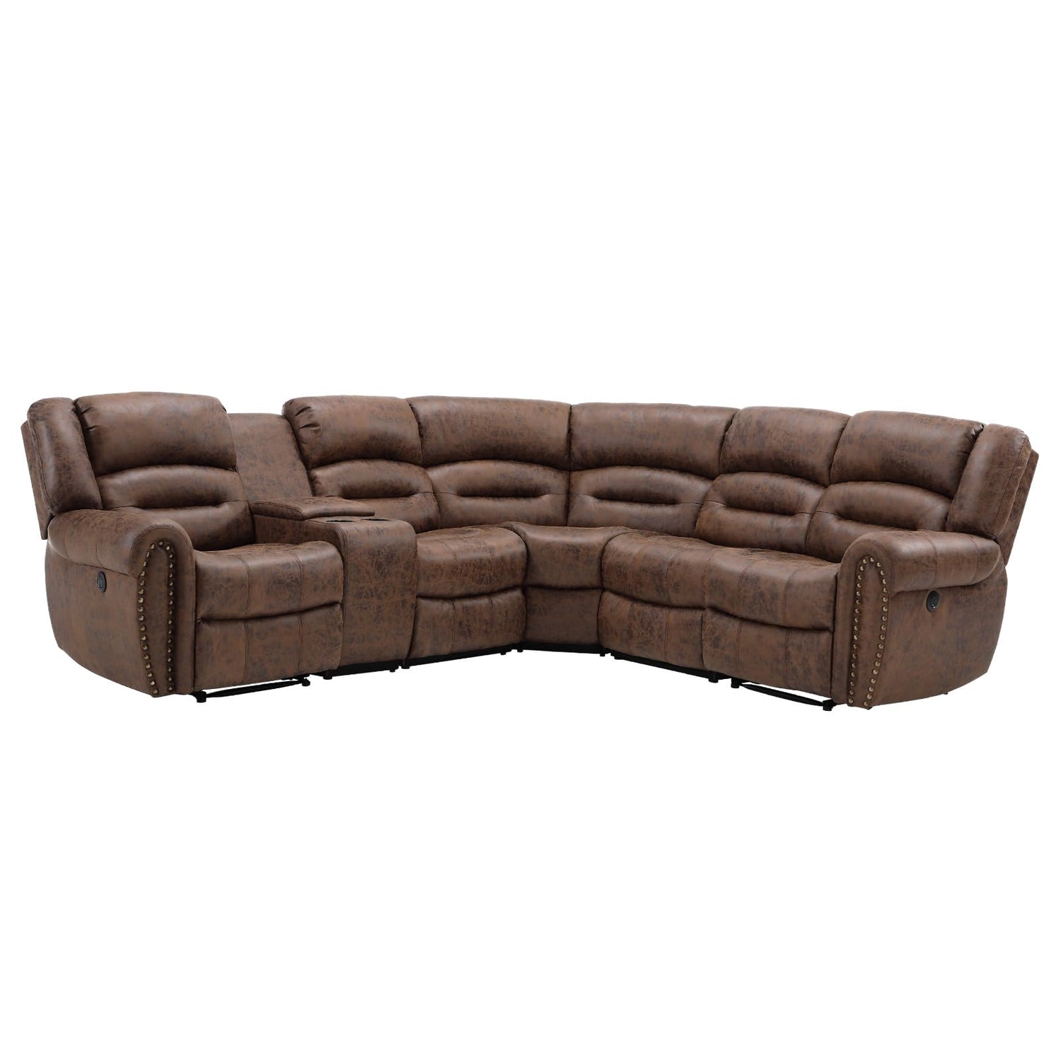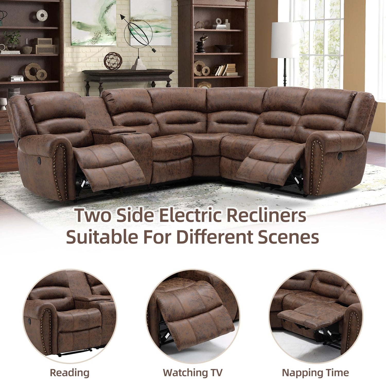 EBELLO L-Shaped Power Reclining Sectional Couch for Living Room, Faux Leather Recliner Sofa Set Corner Sectional Couch Home Furniture Set, with Storage Console and Cup Holders, USB Port, Coffee Brown