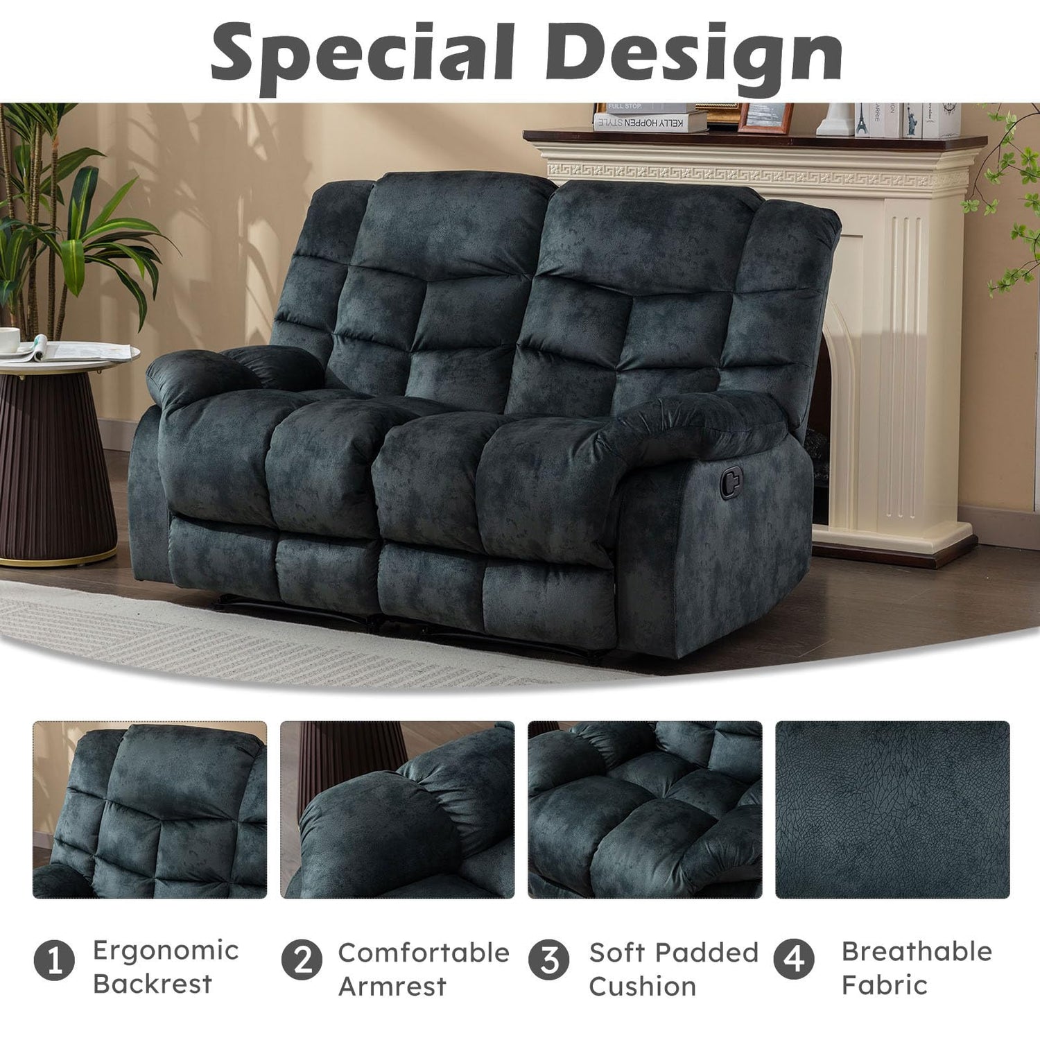 EBELLO Loveseat Recliner Sofa for Living Room, Extra Wide Modern Overstuffed 2 Seat Reclining Manual Sofa Chair, Breathable Fabric and Padded Cushion, Green Grey