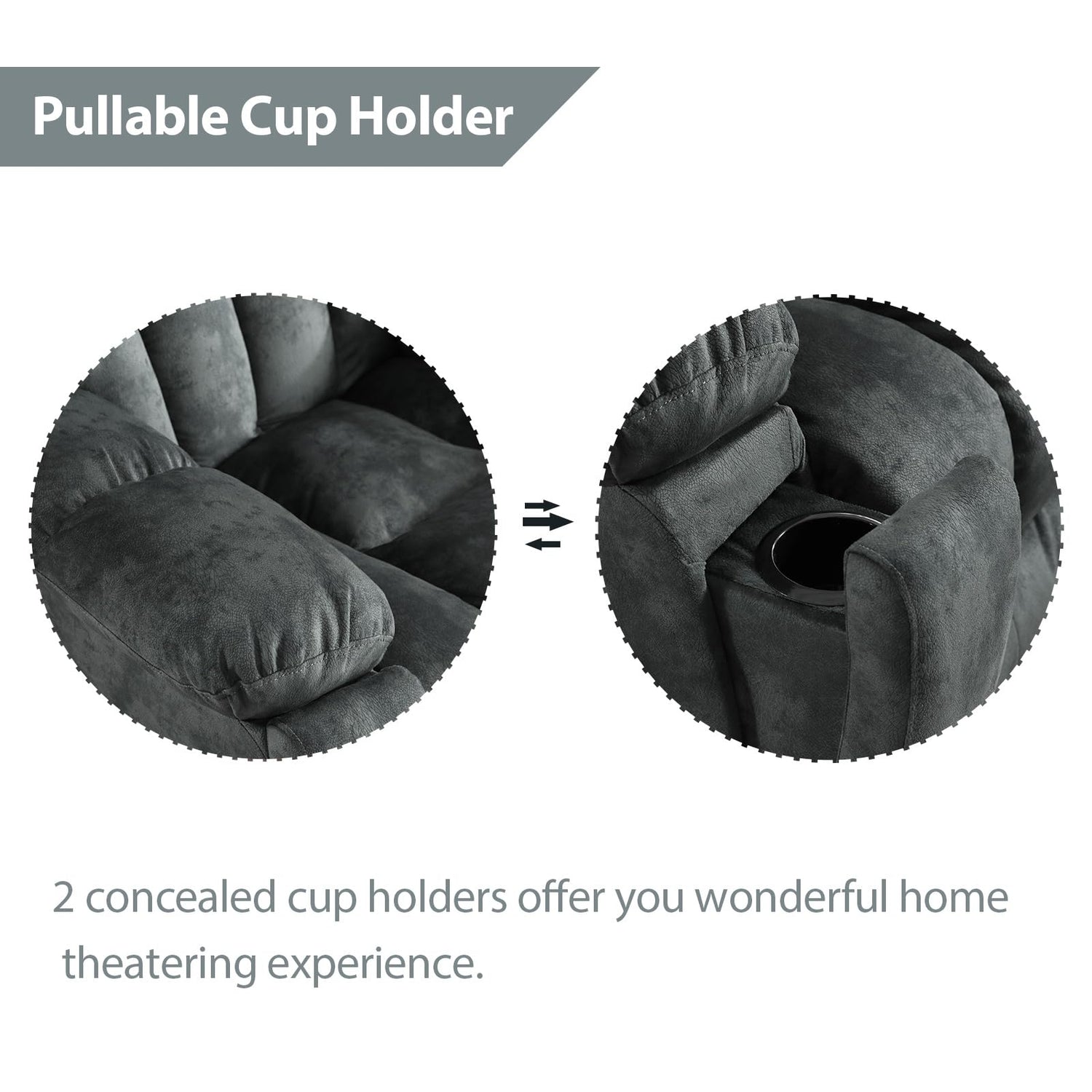 - Concealed Armrest Cup Holders: Equipped with hidden cup holders in the armrests, this reclining couch keeps your drinks secure and within easy reach. Enjoy the convenience of having your favorite beverage handy while relaxing or watching TV.