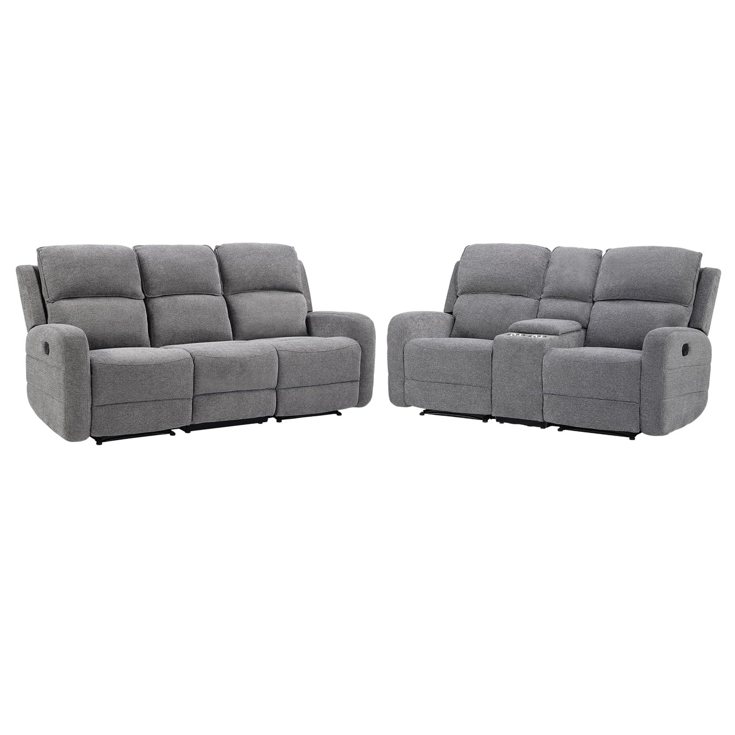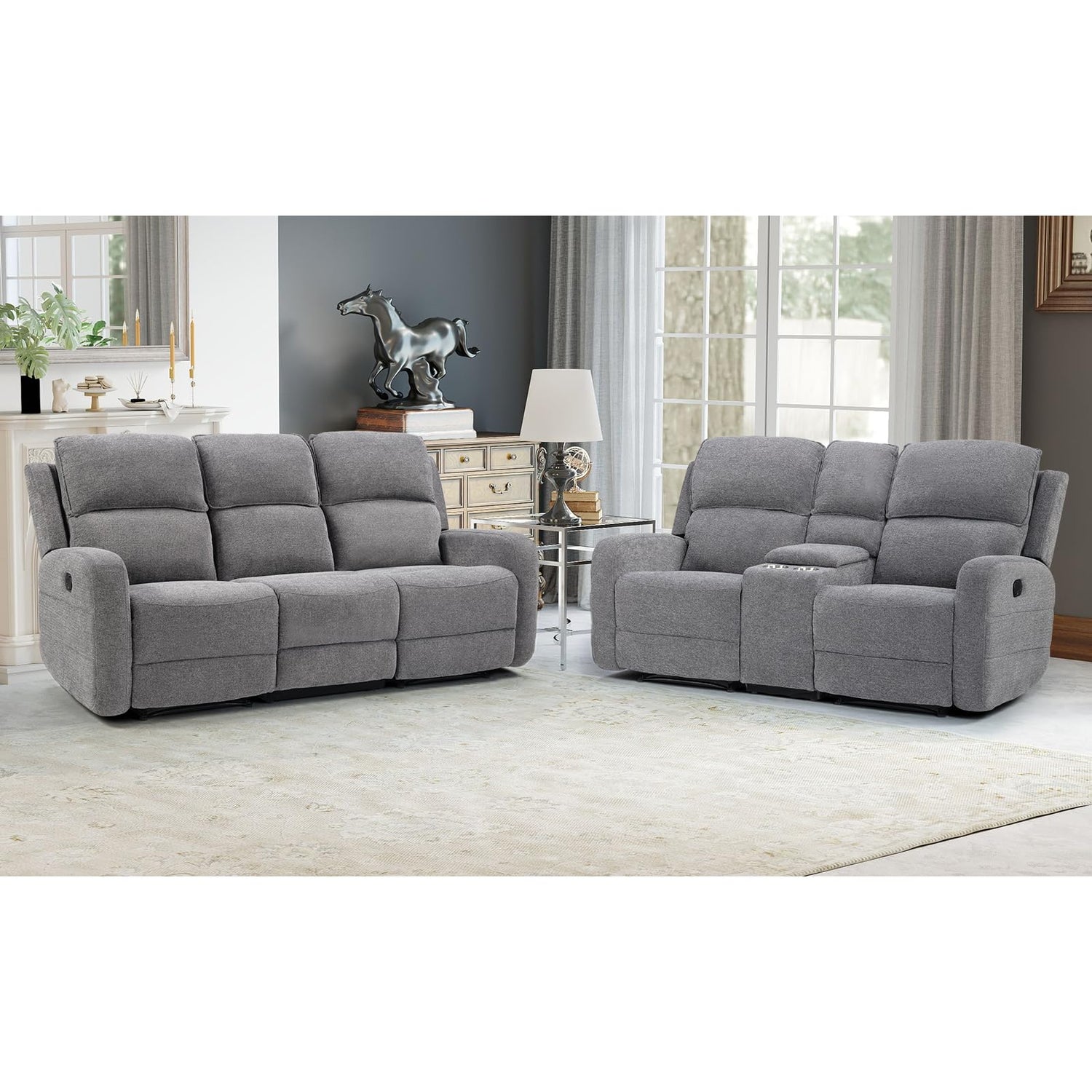 EBELLO Manual Living Room Furniture Reclining Couch Set, Soft Fabric Recliner Loveseat and 3 Seat Sofa Couch for Meeting Room, Overstuffed Backrest(Loveseat+Sofa)