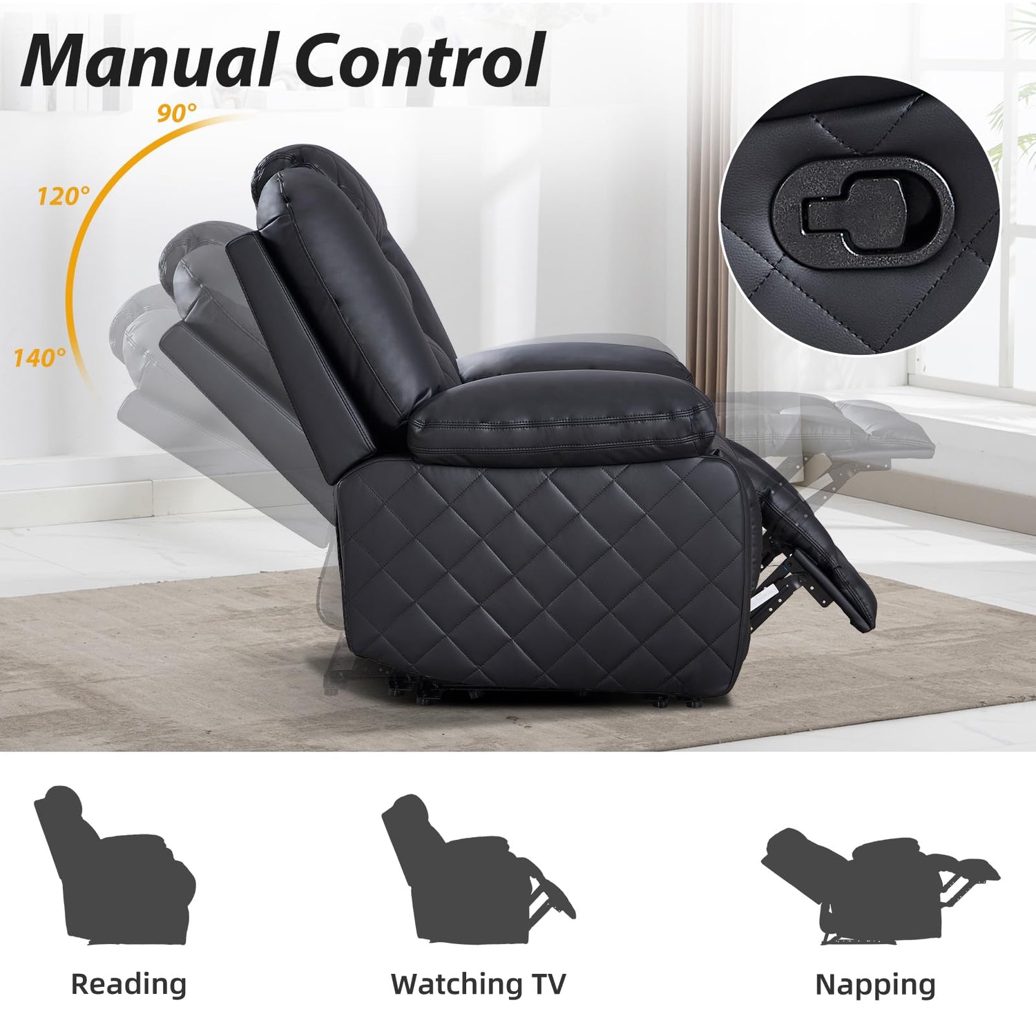 - Effortless Manual Reclining Function: Find your perfect lounging angle with a simple pull of the lever, allowing you to adjust the backrest and footrest with ease. Ideal for movie nights, reading sessions, or just enjoying a quiet moment, this feature delivers personalized comfort