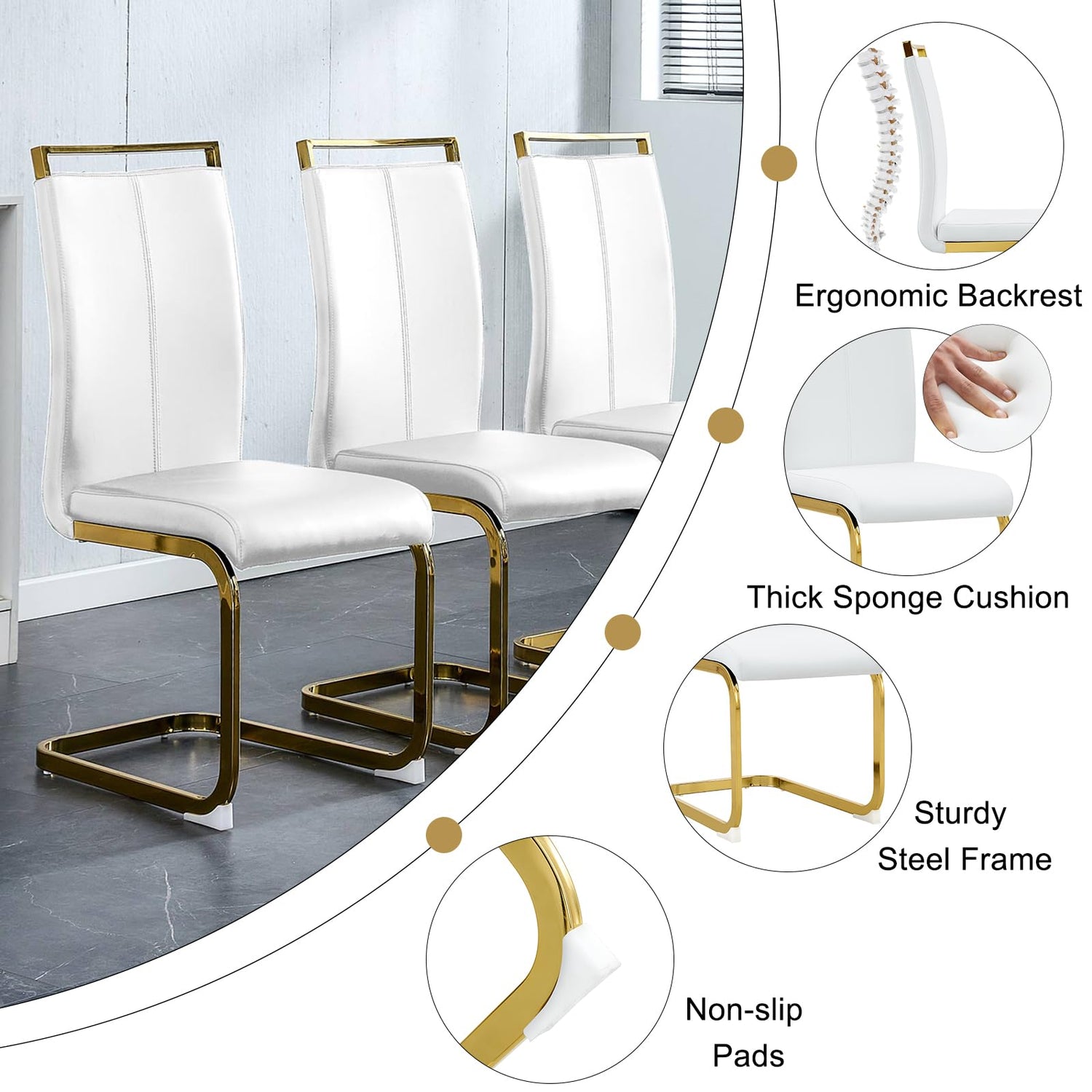 - Elegant Armless White Dining Chairs Set of 4:The white high-back dining chairs conform to ergonomic standards and features, offering comfort and elegance while effectively alleviating the fatigue of prolonged seating. The C-shaped gold chrome metal frame adds sturdiness