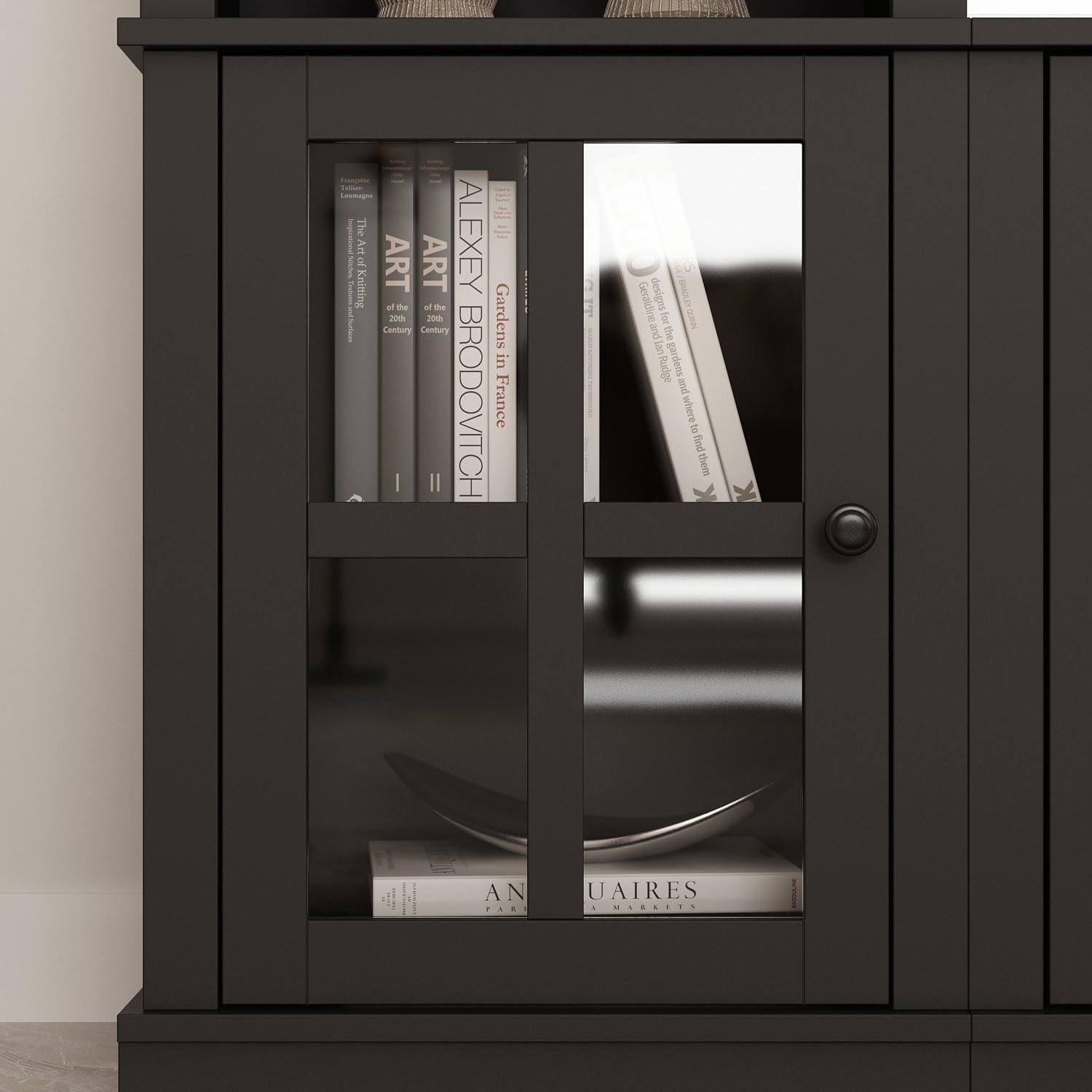 - Modern Design: This ECACAD black TV stand unit with glass doors is elegant, the entire wall unit will together to show your taste and create luxury charm. It works well in living room, bedroom, home theater, shops, hotels, home office and etc.