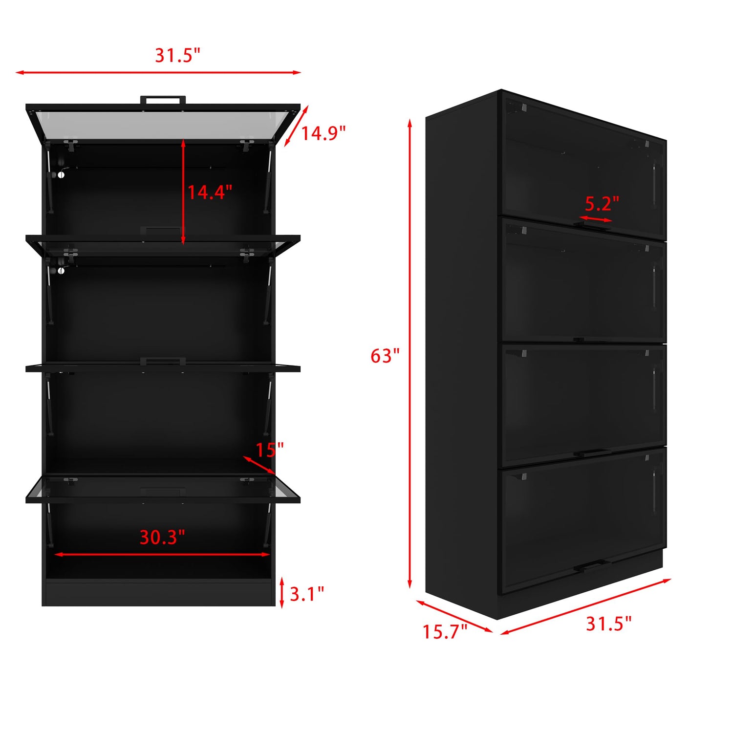 - [Sturdy and Durable] Crafted mainly from high-quality particle board with black aluminum alloy frame, this bookcase is built to last.The 4 tempered glass doors are not only beautiful and practical, but also provide excellent protection with a friction and scratch-resistant surface that is easy to care for. For extra stability, anti-tip kit is provided.