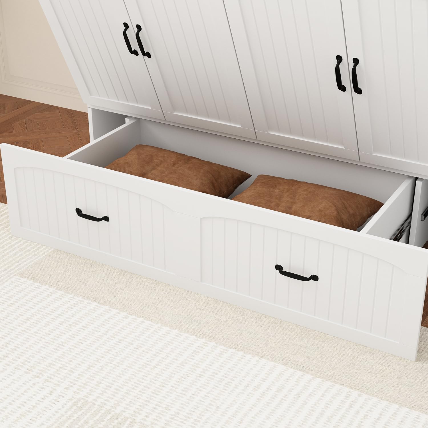 - [2 Nightstands] - The full size murphy bed comes with 2 nightstands for easy use. Spacious top provides easy access to lamps, magazines, books, cell phones and other items. And the top is free to display your photos, small plants and other ornaments