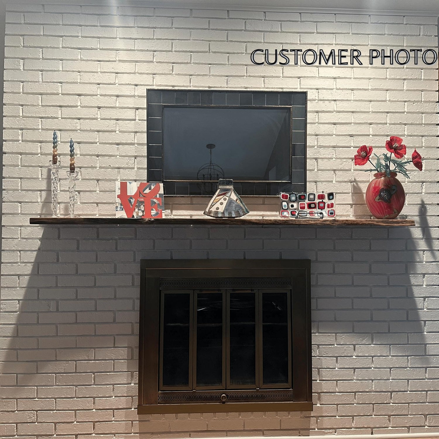- CUSTOM: We're happy to create custom wood floating fireplace shelves. If you'd like smothing different please reach out.