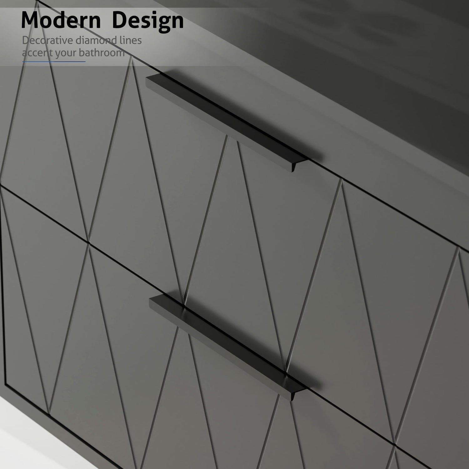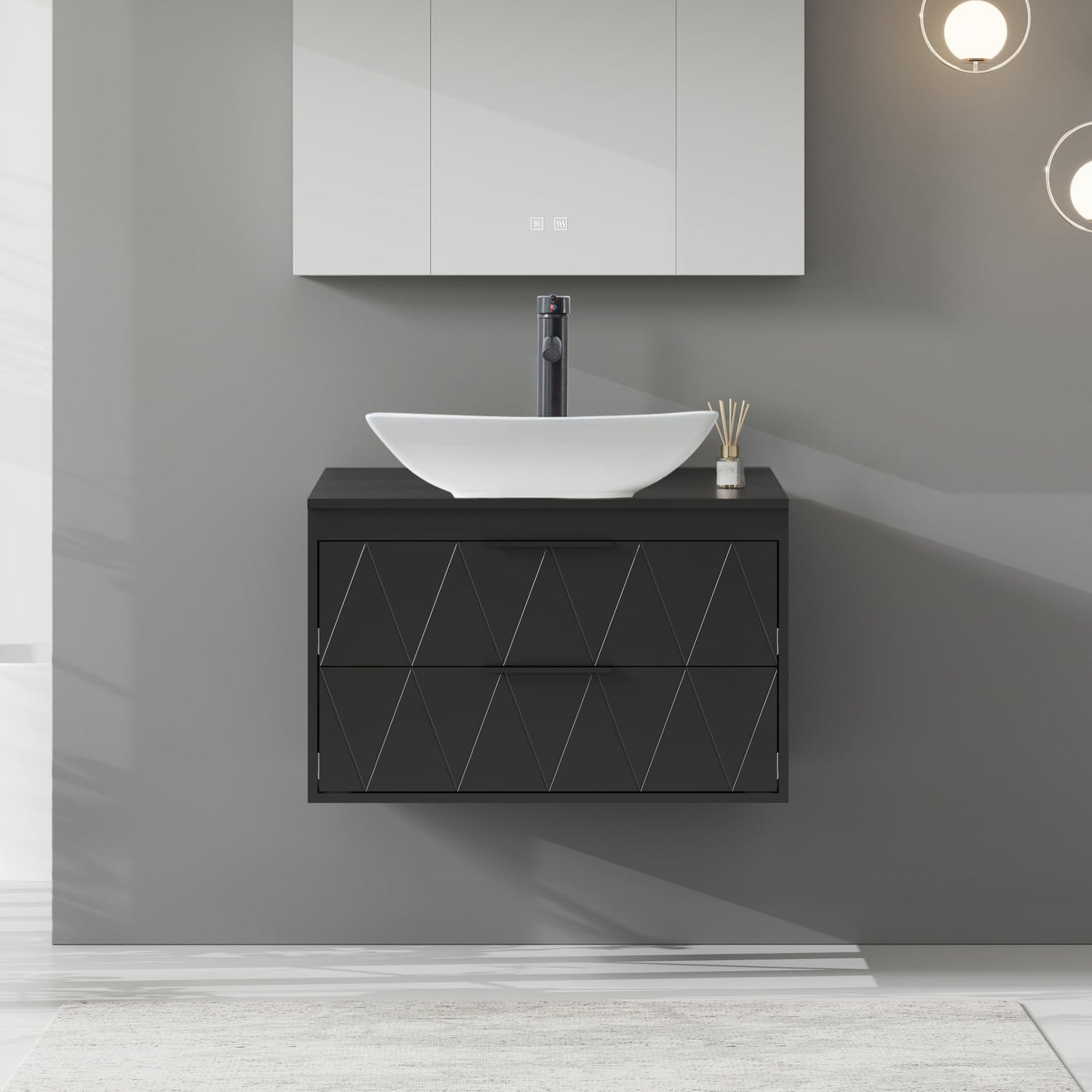 eclife 30" Bathroom Vanities Cabinet with Sink Combo, Wall Mounted Floating Cabinet w/Decor Lines, White Curved Ceramic Vessel Sink W/ORB Water Save Faucet & Pop Up Drain, Black