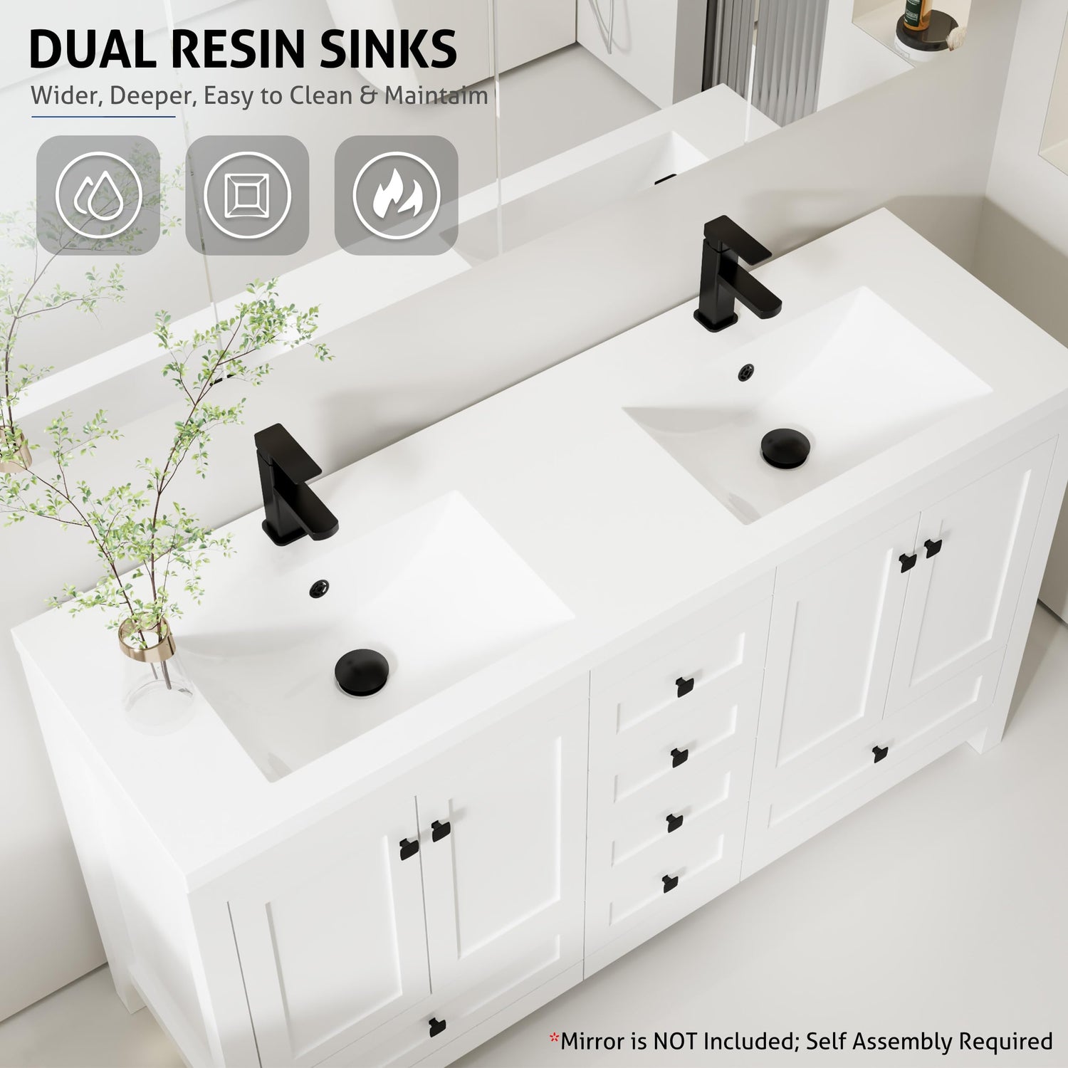 - Widen Sink: In consideration of allowing customers to have a better washing experience, we widened the sink. Besides, it touches smooth and it is easy to clean and remove the stain. Mirror is NOT Included