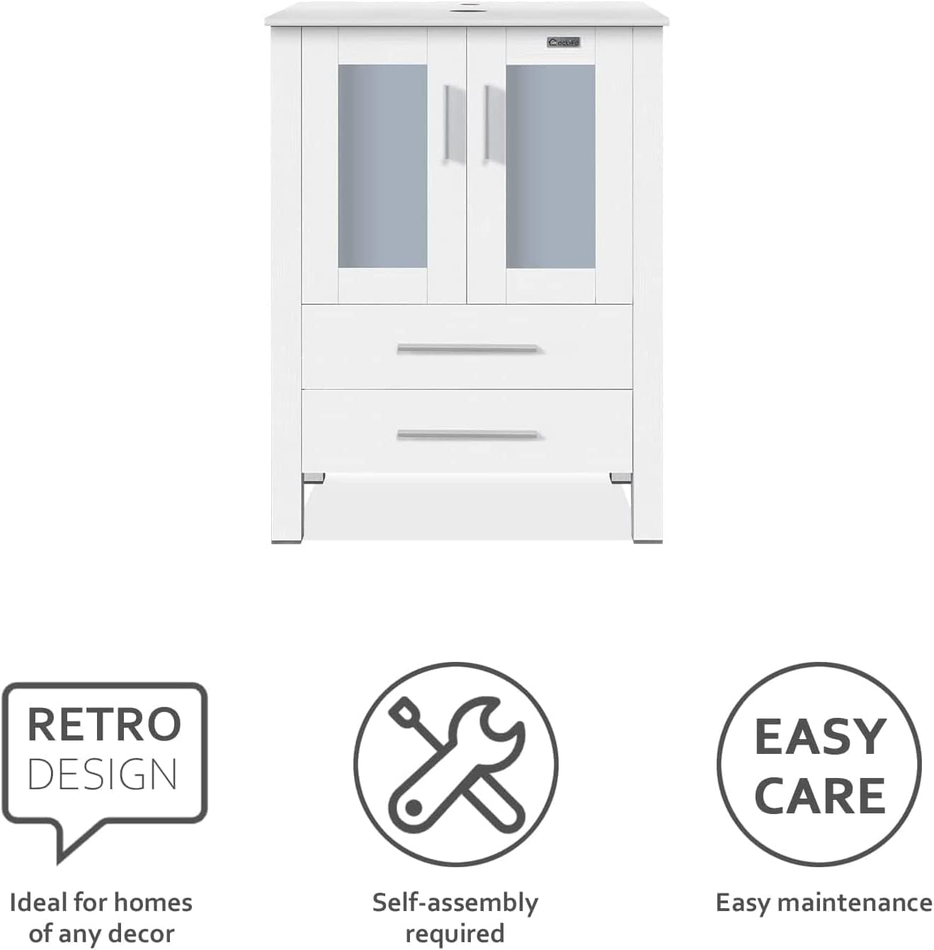 - MATERIAL & ASSEMBLE: High quality MDF makes vanity more sturdy. 15mm Thickness and smooth surface board, easy to clean and wear-resistance. Easy assembly is required. Clear instruction is packed