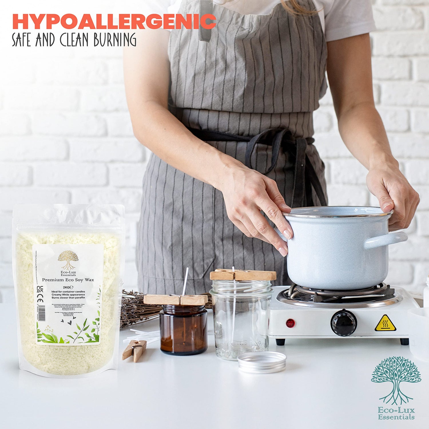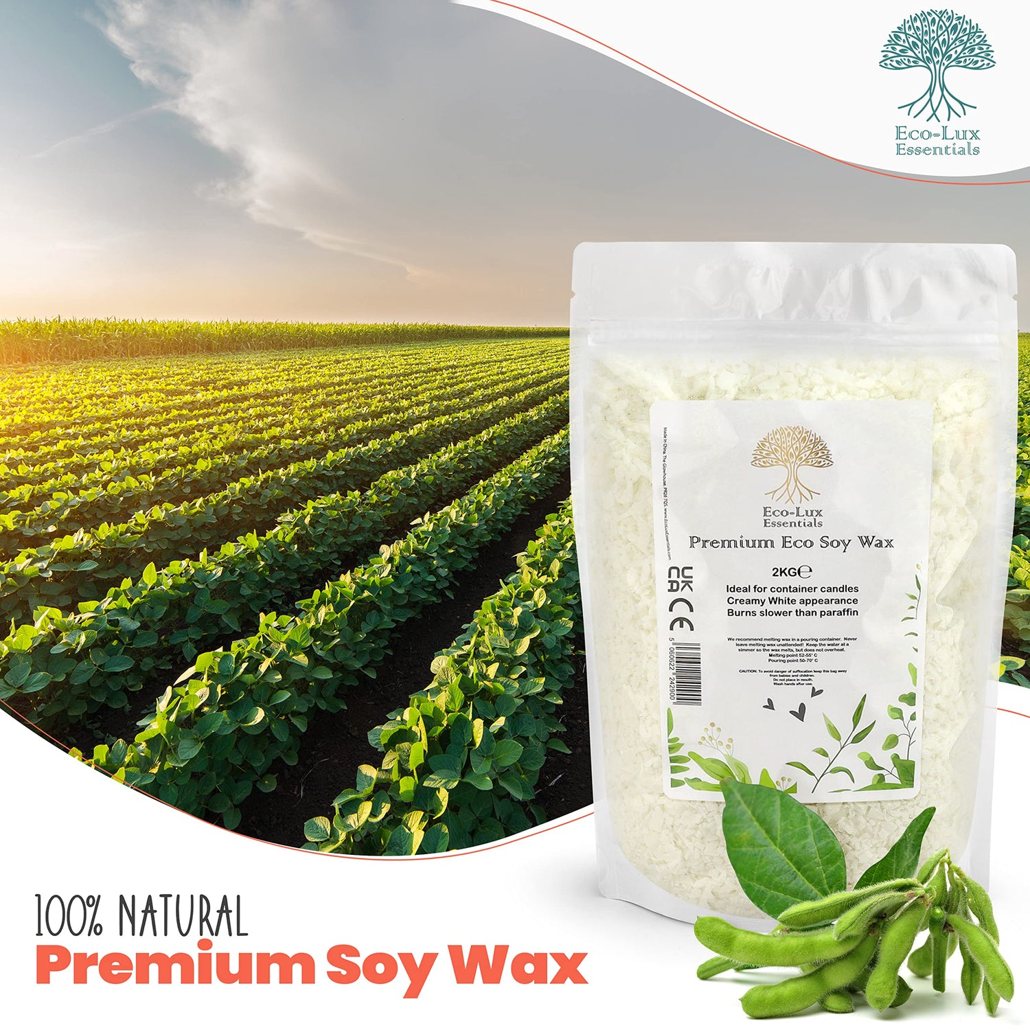 Eco-Lux Essentials 4.4lbs Premium Eco Soy Wax, White, Vegan Cruelty Free, Candle Making from Organic Farm 100% Natural SOYA Wax (4.4, Pounds)