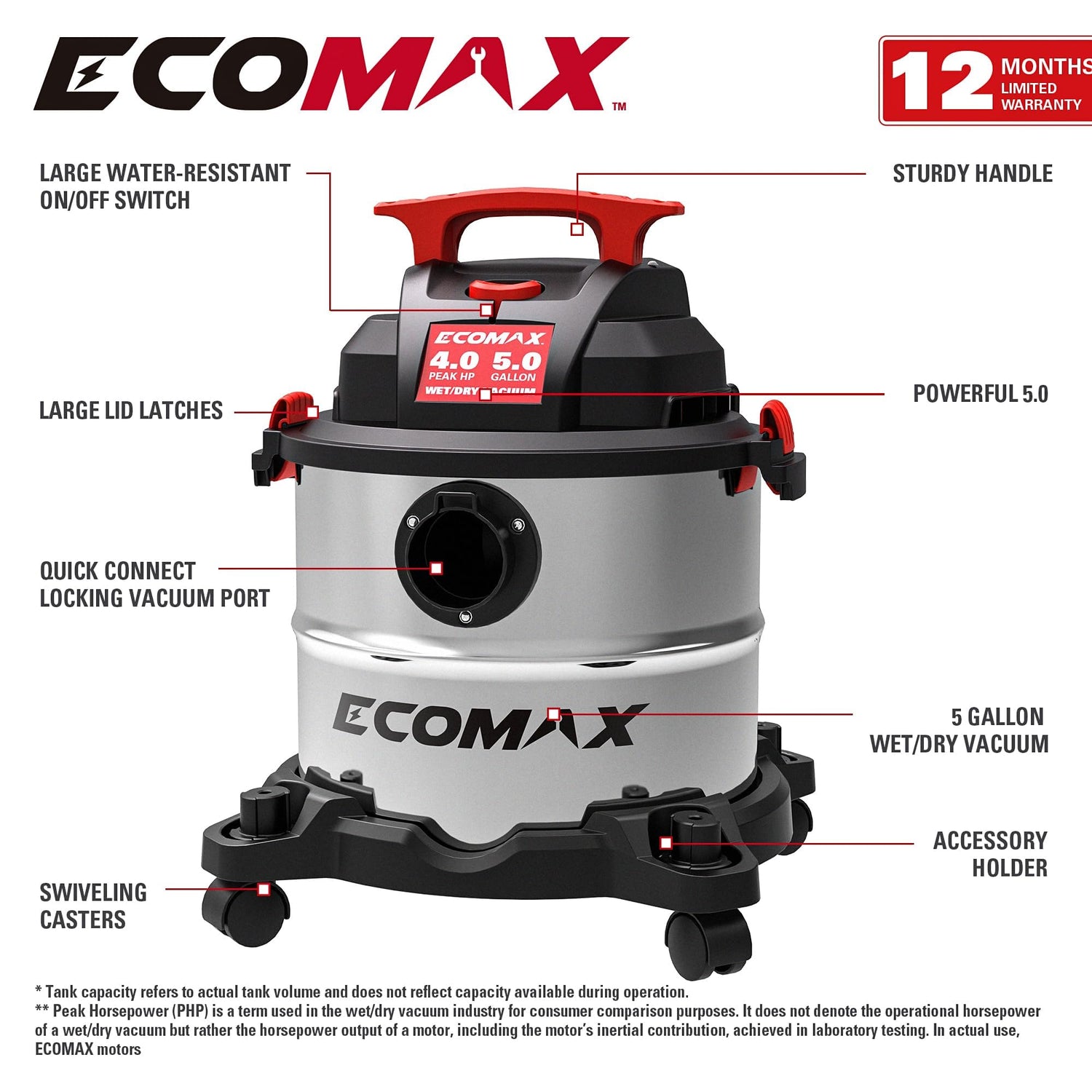 - 【12-MONTH SERVICE SUPPORT】Should you encounter any problems about shop vacuum, feel free to reach out to us via the email or hotline listed in the manual; we commit to responding within 24 hours and providing satisfactory support. At ECOMAX, we value the needs of every customer!