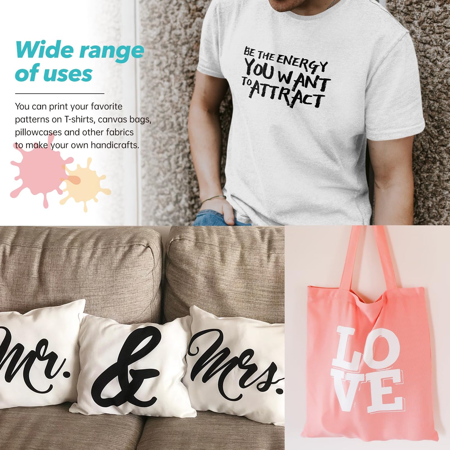 - Wide range of uses: You can print your favorite patterns on T-shirts, canvas bags, tablecloths and other fabrics to create your own handicrafts