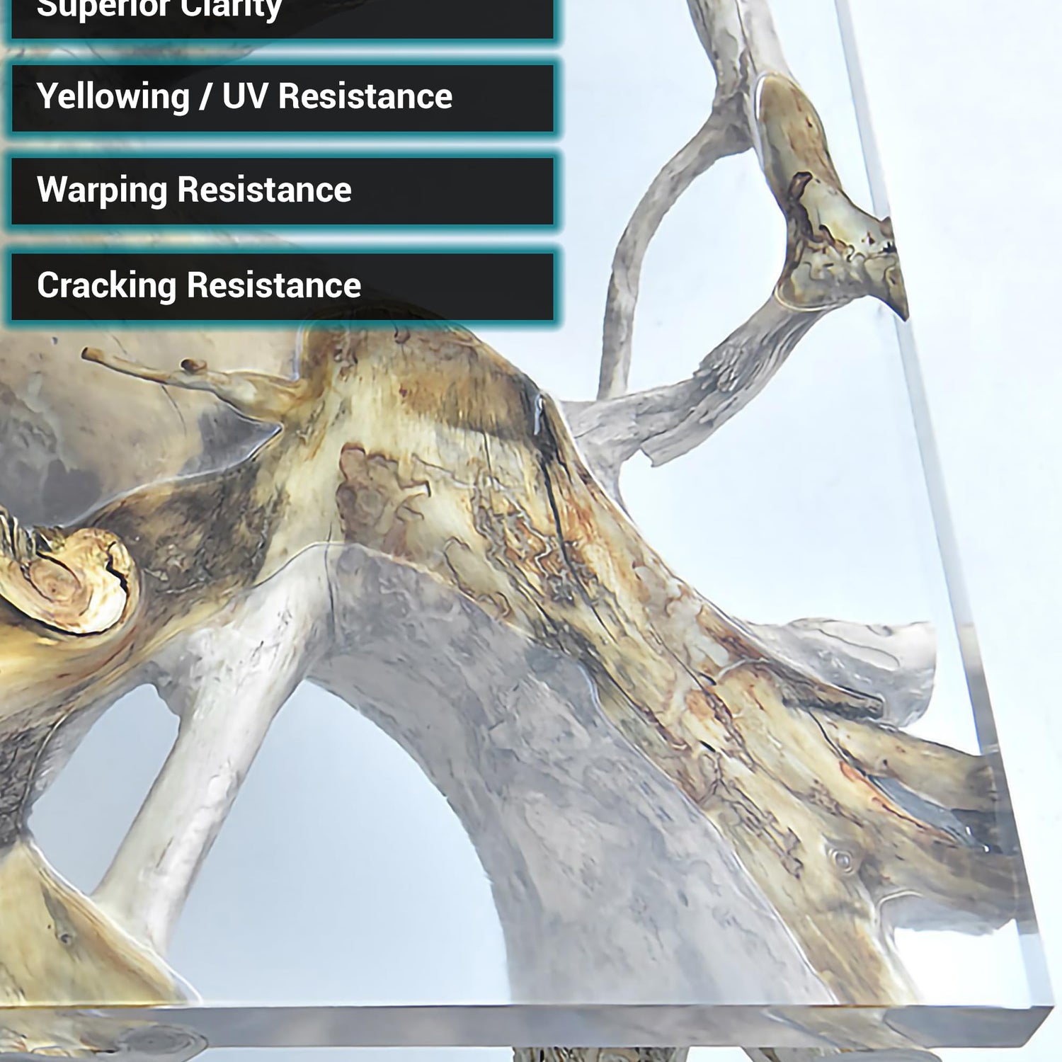 - [SUPERIOR CLARITY] Ensures water-clear transparency for thick pour projects, with resistance to yellowing, warping, and cracking for a long-lasting pristine appearance.
