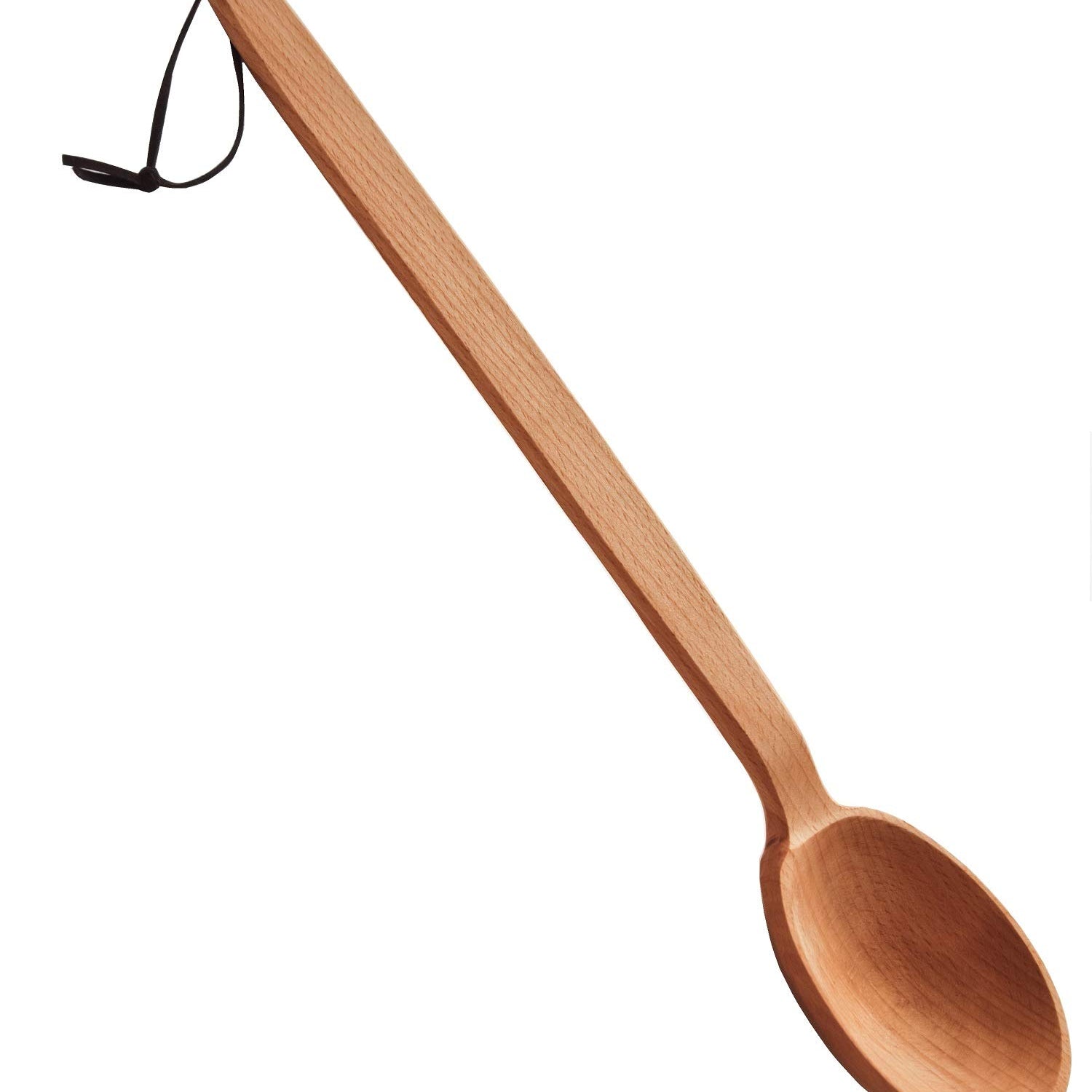 - 18-inch EXTRA LONG HANDLED COOKING SPOON – easy to hold with a loop. This giant wooden spoon is made of natural hard beechwood in Ukraine (Europe). Will last years.