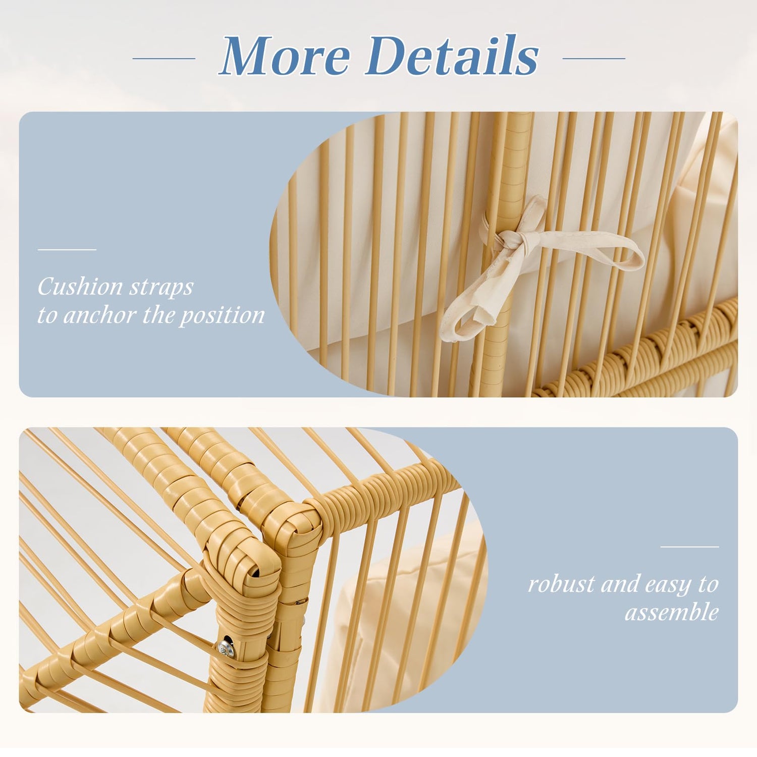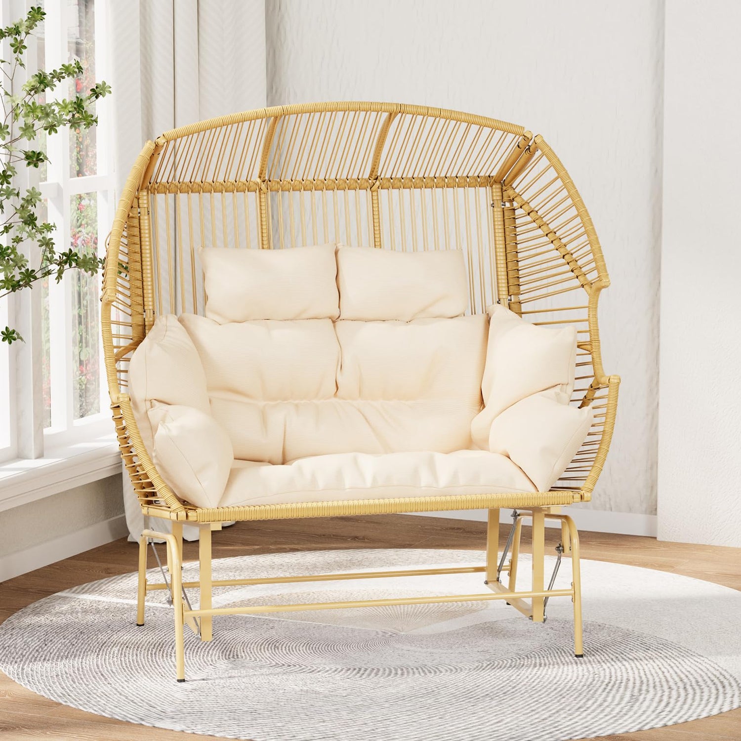 ECOTOUGE Indoor Double Egg Chair, Outdoor Oversized Loveseat, 2 Person Extra Large Wicker Lounge Rocking Glider Chairs for Living Room Bedroom, Yellow