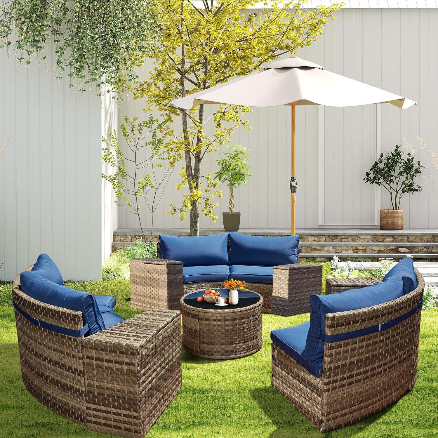 - Wicker Outdoor Patio Furniture Set: This patio furniture set includes 6 x armless sofa, 4 x armrest storage box, 1 x round table, whether youre enjoying a peaceful moment alone or hosting a gathering with friends, this sofa ensures that comfort is never compromised