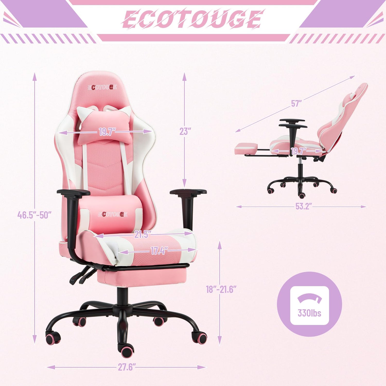 - 【Multi Purpose PC Gaming Chair】 ECOTOUGE pc chair is not only a professional game chair, let you immerse in the game also does not feel tired at all, is also as an office chair, achieves the perfect balance between comfort and fashion.
