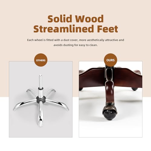 - Solid Wood Feet: Designed with solid wood base and equipped with silent casters, this heavy duty chair showcases a superior and long-lasting effect. The high-quality gas bar passed BIFMA certification ensures durability, with a weight capacity of approximately 333 pounds.