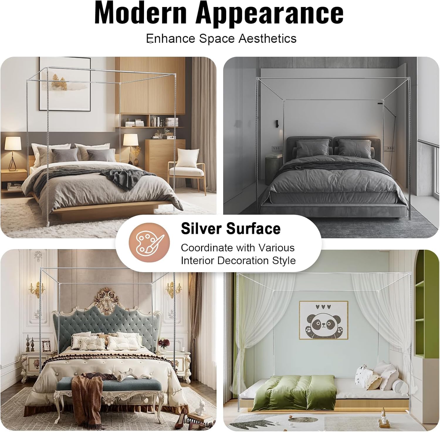 - Perfect for Mosquito Nets: This Canopy Bed Frame also serves as an excellent support frame for mosquito nets. It’s ideal for use in homes, dormitories, or even hospitals, providing an effective solution to keep bugs at bay while adding a touch of sophistication to your sleeping area.