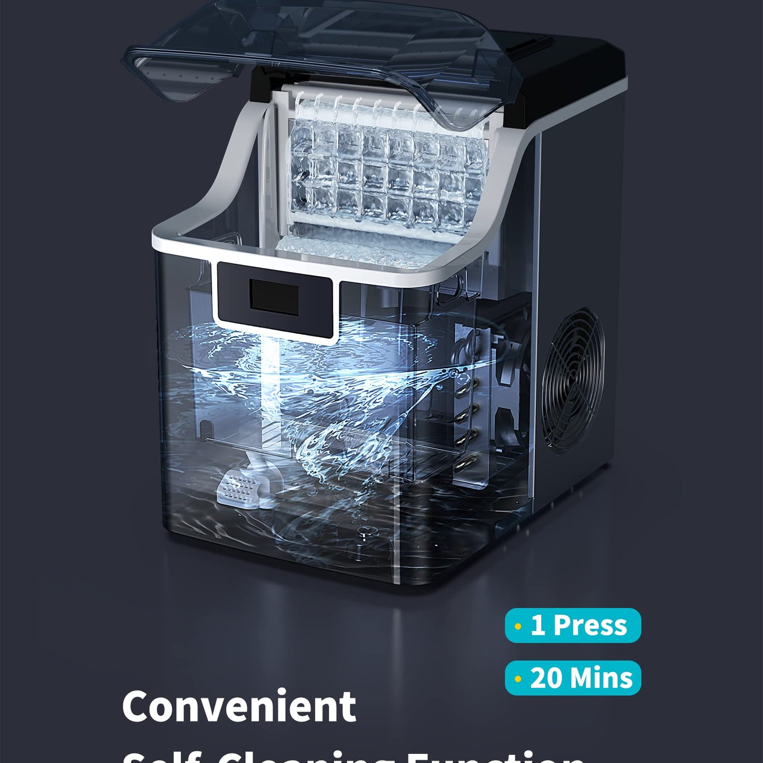 - Hassle-free Self-Cleaning: Effortlessly maintain your ice maker's cleanliness with the self-cleaning feature, ensuring every corner is spotless. For extended storage, wash and dry the inside. Enjoy your ice worry-free
