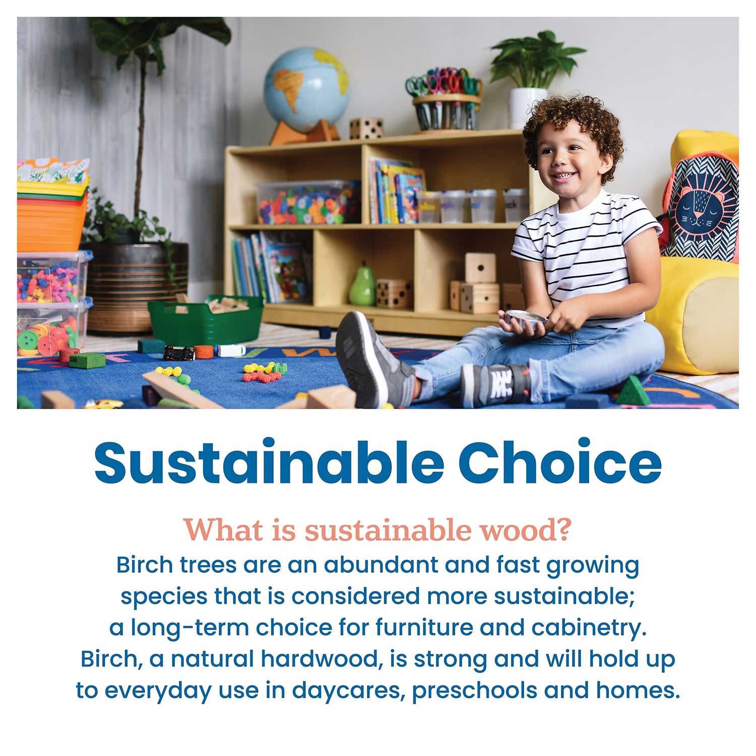 Details: Keep your daycare, preschool, and home organized with ECR4Kids 5-Section Mobile Storage Cabinet. The multipurpose storage solution provides ample space to display and organize books, games, and arts and crafts supplies. Make playtime more manageable with displays of developmentally appropriate toys; rearrange play spaces with too many options. Use this toy rotation storage to bring excitement back as playthings are refreshed. Designed to grow with little ones, this organizer helps parents, teachers, and educators keep small items off the floor and within reach. The low-profile open-face shelves encourage children to select their favorite activity independently and introduce organizational skills and clean up when playtime is over. Four casters are included for mobility; move the book display from a reading space to a craft room. Constructed from sustainably harvested birch plywood with a durable finish sealing the wood surface and resisting scratching. A UV inhibitor helps furniture resist ultraviolet light and yellowing. Natural birch plywood is durable and designed for everyday use in a commercial or institutional environment, and great for the home. The natural grain complements any space. Combine the Montessori storage with ECR4Kids Birch Collection furniture pieces to complete the space; sold separately.