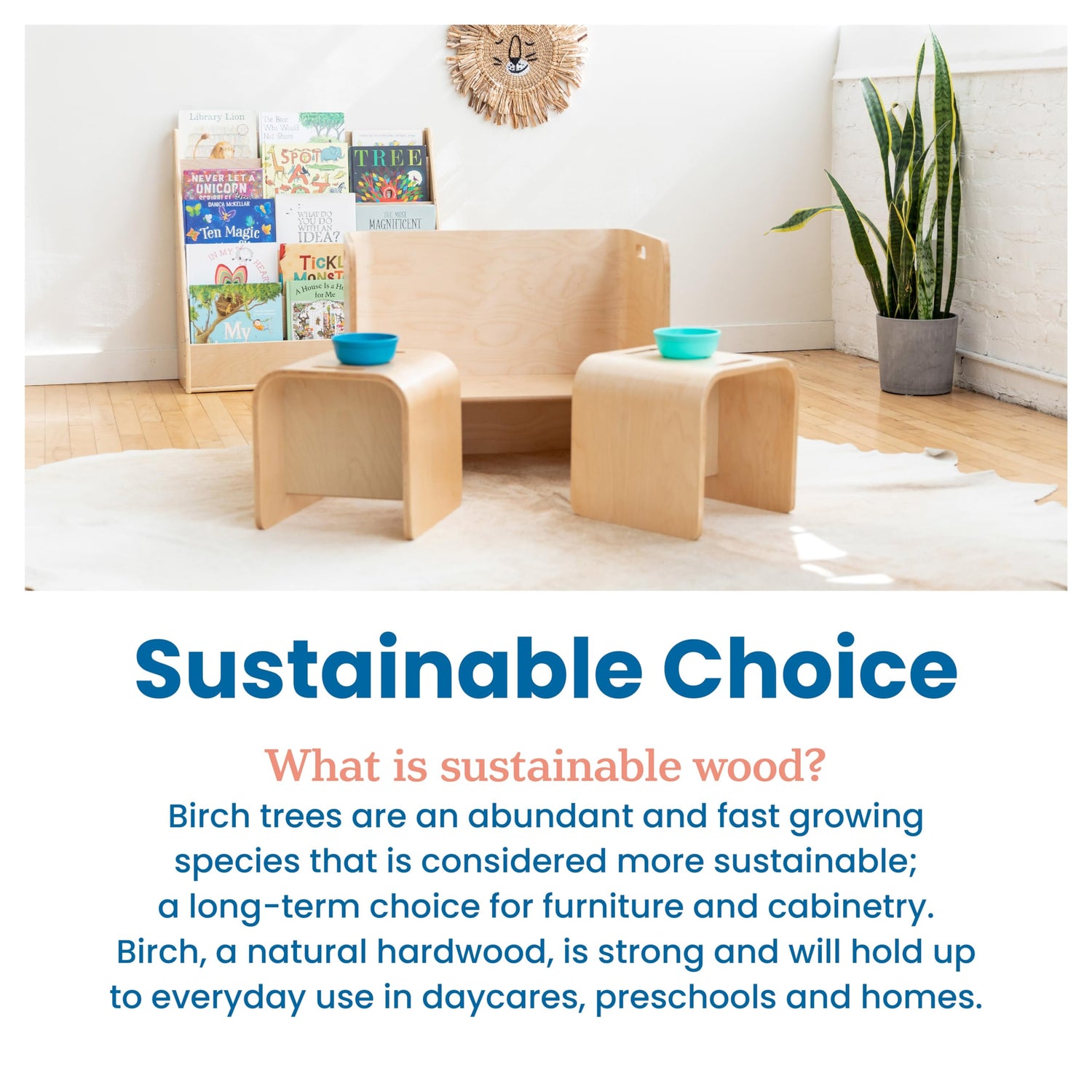 Details: The ECR4Kids Bentwood Multipurpose Table and Chair Set is the perfect blend of modern design, versatility, and comfort for any learning environment. The set comes with one sturdy table and two chairs ideal for libraries, preschools, and homes. The possibilities are endless with the adaptable furniture set which can be used as tables, chairs, stools, or shelves. The chairs have two seat heights to accommodate growing children. Child-sized furniture promotes student confidence and independence, and a dedicated workspace for learning encourages children to develop good work habits. Kids take ownership of their learning as they navigate a child-sized environment allowing them to enjoy a book, snack, or seated rest while feeling comfortable and confident in their bodies. When learning time is over, chairs can be pushed under kids' desks to save valuable floor space. The lightweight set features built-in handles for easy transportation between rooms. Constructed from birch plywood that is molded into shape creating a solid natural hardwood. A durable finish seals the surface and resists scratching. A UV inhibitor helps furniture resist ultraviolet light and yellowing. Pair with ECR4Kids Birch Classroom Furniture to complete the set; sold separately.